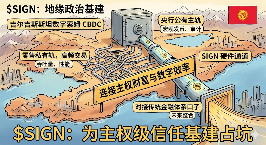 前阵子看到吉尔吉斯斯坦那个数字索姆主网上线的案例,还挺触动我的。以前老听人讨论公私双轨架构,觉得是纸上谈兵,没想到人家真跑通了。央行控制着公有主轨,管宏观发币和审计;零售那套高频的,交给私有轨处理;两条轨之间用硬件通道连起来,吞吐量很高,还给以后对接传统金融体系留了口子。这种主权级别的应用,要是多起来,SIGN这类基建项目的想象空间确实能打开不少。价格上,现在SIGN就在底部横着,市场对这类基建项目普遍比较谨慎,资金都去追热点,没人愿意多看基建一眼。我选在这个位置小仓位左侧进场,说白了就是赌一个非对称的机会。万一哪天资产发行的需求回来了,需要有一个能承载大量项目做透明分发的底层工具,这东西很可能会被市场重新挖出来。