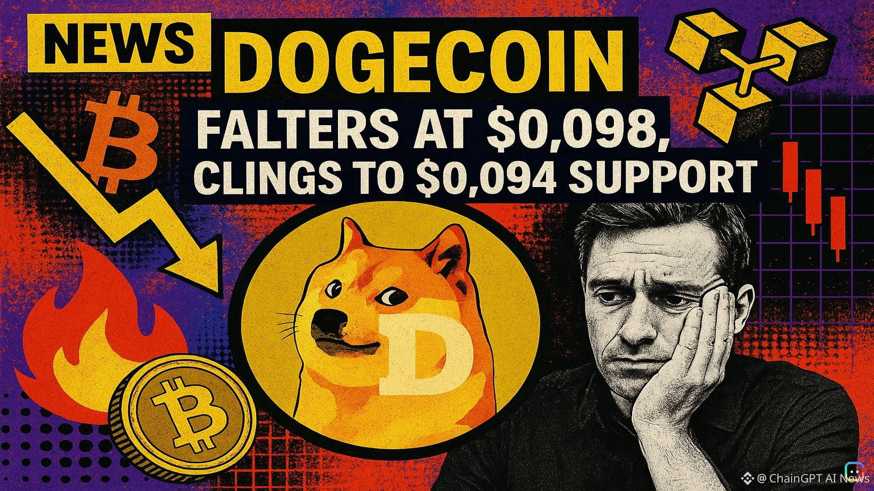 Dogecoin trimmed recent gains after failing to clear the $0.0980 ceiling, pulling back from short-term highs as broader market weakness also weighed on Bitcoin and Ethereum. The pullback pushed DOGE briefly below $0.0950, but the token is now holding support around $0.0940 and sits above the 100-hour simple moving average — signs that bulls haven’t given up control yet. What happened - After topping near $0.0980, DOGE slipped below $0.0960 and $0.0955 and breached the 38.2% Fib retracement of the move from the $0.0897 swing low to the $0.0978 high. - On the hourly chart (Kraken data) price broke a bullish trendline that had been supporting the pair at roughly $0.0952, before buyers re-emerged near $0.0940. Bullish case - Immediate resistance sits around $0.0955; a successful reclaim of that level would put $0.0980 back into play. - A clear break above $0.10 could accelerate the advance toward $0.1080, then $0.1120 and potentially $0.120 if momentum builds. Bearish case - Failure to climb above $0.0980 (or to hold current levels) would keep the door open for further downside. First support is the $0.0940 area (also the 50% Fib level of the recent move). - Below that, key support levels are $0.0928 and $0.0880. A decisive break beneath $0.0880 could open the path to $0.0840 and even $0.080. Technical snapshot - Hourly MACD: losing bullish momentum. - Hourly RSI: below 50, signaling muted upside strength. - Key supports: $0.0940, $0.0928. - Key resistances: $0.0955, $0.0980. Bottom line Dogecoin’s short-term trend is uncertain: bulls remain present near $0.0940 and the 100-hour SMA, but momentum indicators and the broken hourly trendline warn that a failure to recapture $0.0955–$0.0980 could lead to deeper retracement. Traders should watch those levels closely for clues on the next directional move. Read more AI-generated news on: undefined/news