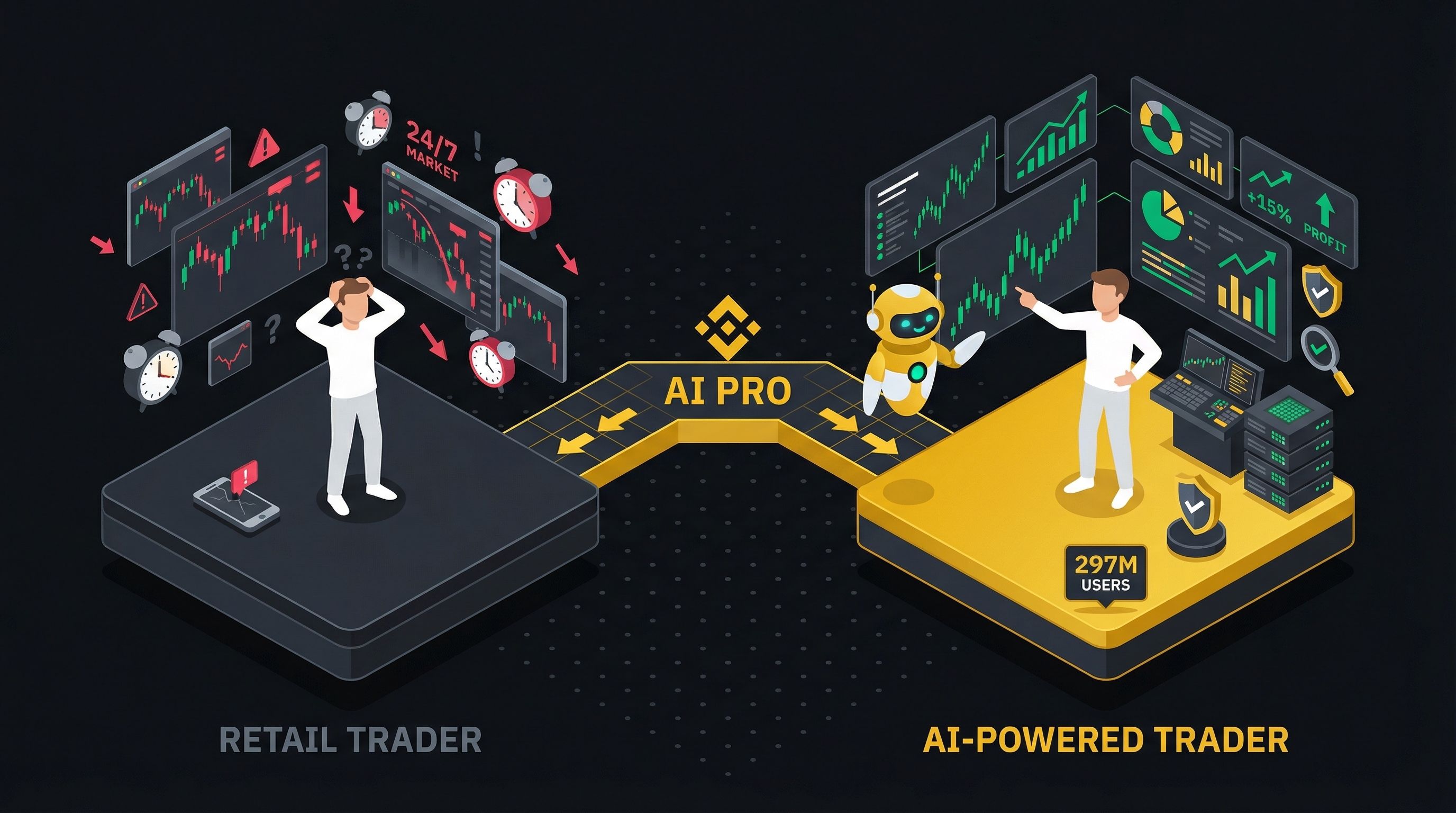 Most retail traders don't lose because they're dumb. They lose because the market runs 24/7 and they physically cannot. The dream has always been: what if I had the same tools as the pros? With 297 million users now on Binance, that dream just became a $9.99/month reality.