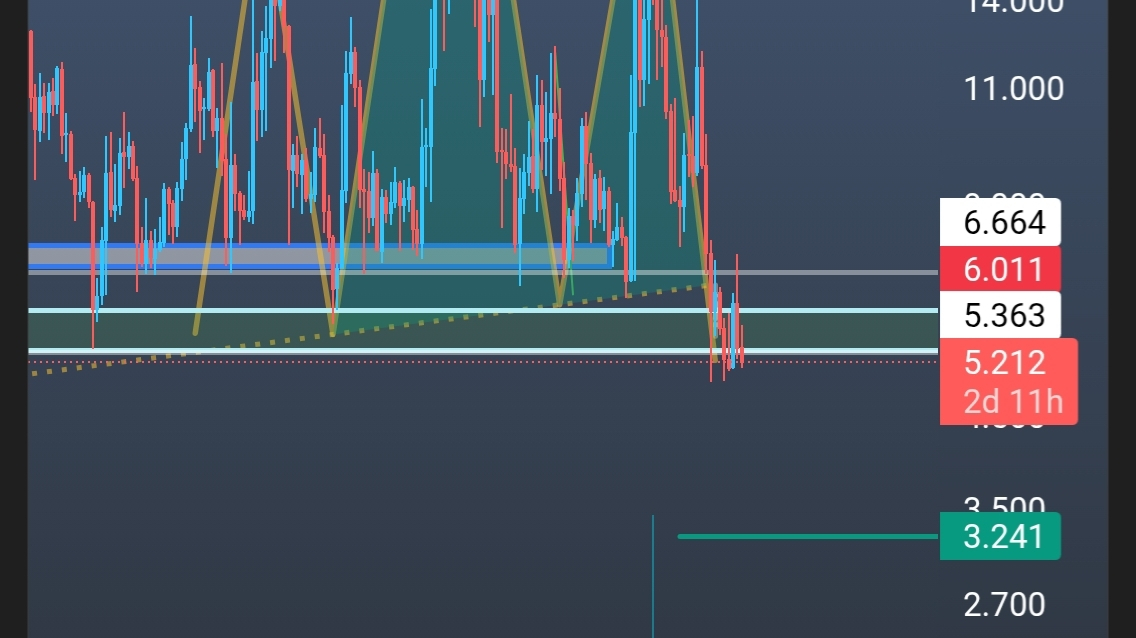 إذا أغلقت شمعة أسبوعية أسفل 6.011 – 5.36 (إغلاق يوم الأحد القادم)، يُفضل الخروج لعدم وجود إيجابية واضحة.