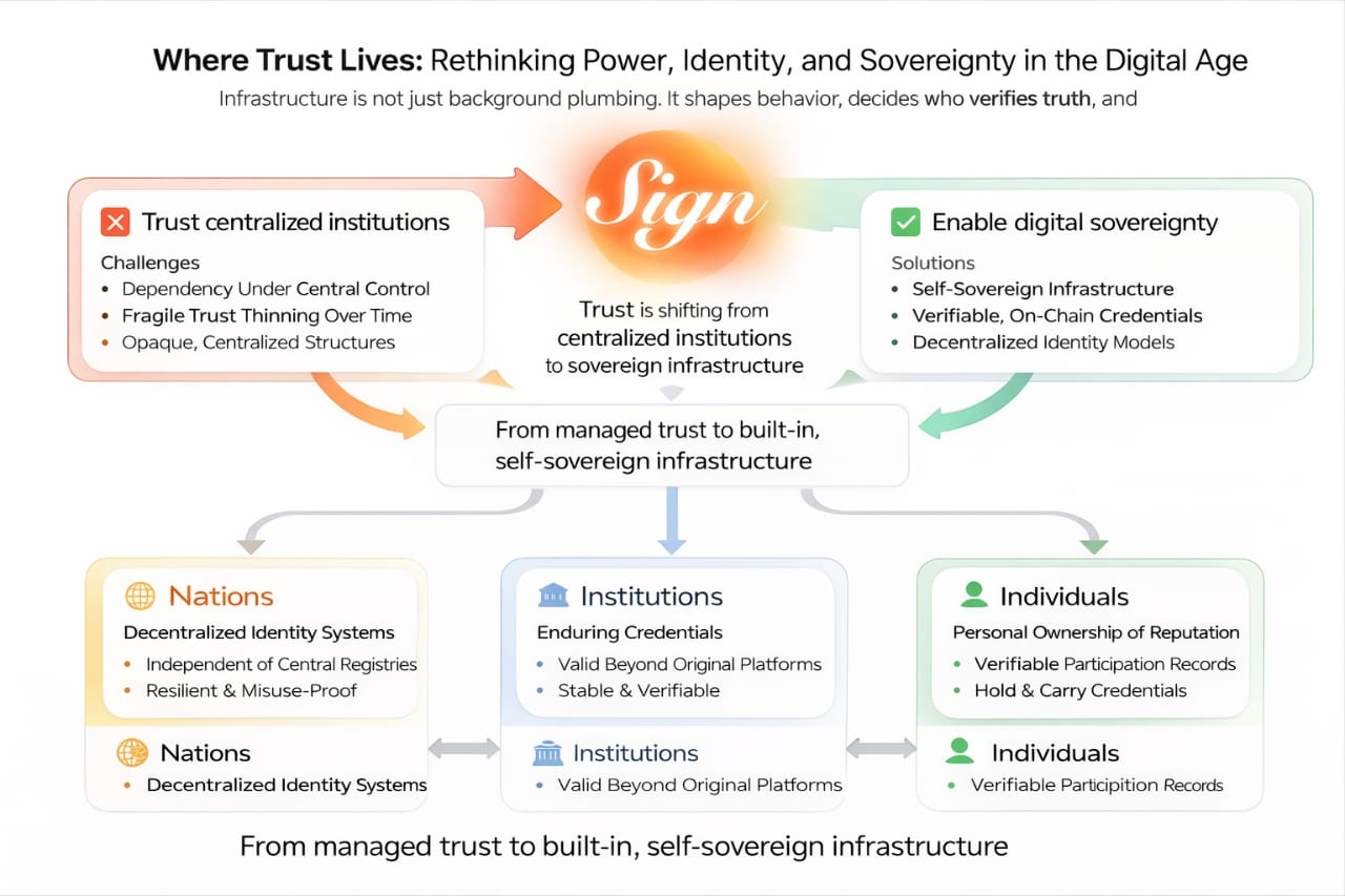 As everything became more digital and more global, the cracks became harder to ignore. Work moved online, people began collaborating across borders without ever meeting, and entire systems of coordination started happening in real time. At the same time, trust in centralized institutions didn’t disappear, but it did start to feel less automatic. Not broken just thinner. That’s when the idea of sovereign infrastructure stopped feeling abstract and started to feel necessary.