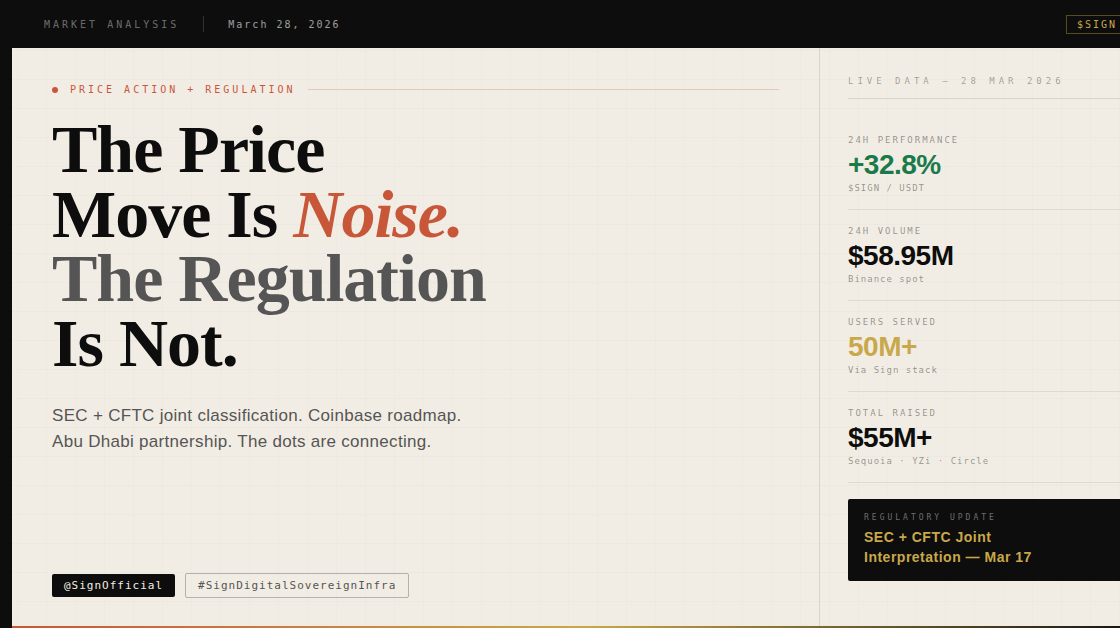 The SEC and CFTC dropped a 68-page joint interpretation 11 days ago officially classifying digital assets as commodities. Not securities. That distinction matters enormously for a project like @SignOfficial because sovereign governments and institutions were waiting exactly for that kind of legal clarity before plugging into on-chain infrastructure.