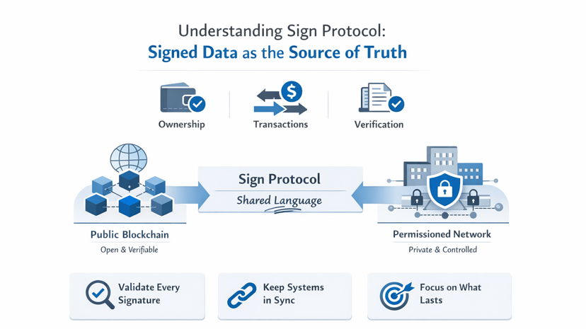 What stands out is that Sign Protocol acts as a shared language across both environments. Public or private, the system treats every update as a signed statement. That allows movement between systems without breaking trust or logic.