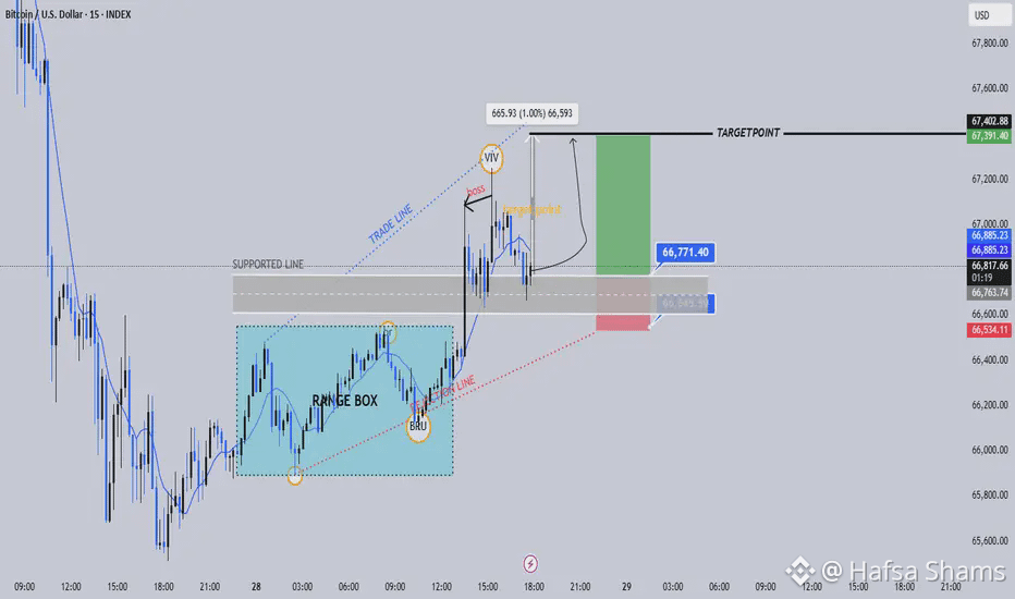 As long as price holds above 66,500 support, bullish bias remains intact.