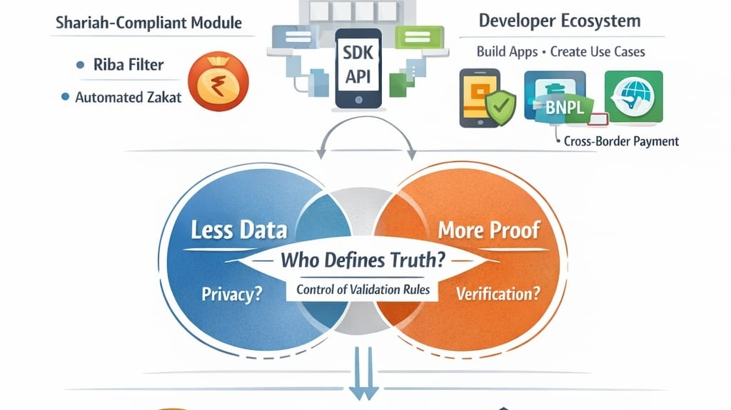 O módulo compatível com a Shariah é um dos exemplos do mundo real mais interessantes. Um filtro automatizado de riba que bloqueia transações baseadas em juros, ou um sistema que automatiza a distribuição de zakat, soa limpo e eficiente no papel. Reduz o erro humano e poderia reduzir a corrupção também. Mas o mesmo problema de governança aparece novamente. Quem decide o que se qualifica como halal ou haram no código? Uma vez que esse julgamento é formalizado em um sistema automatizado, a interpretação se torna infraestrutura.