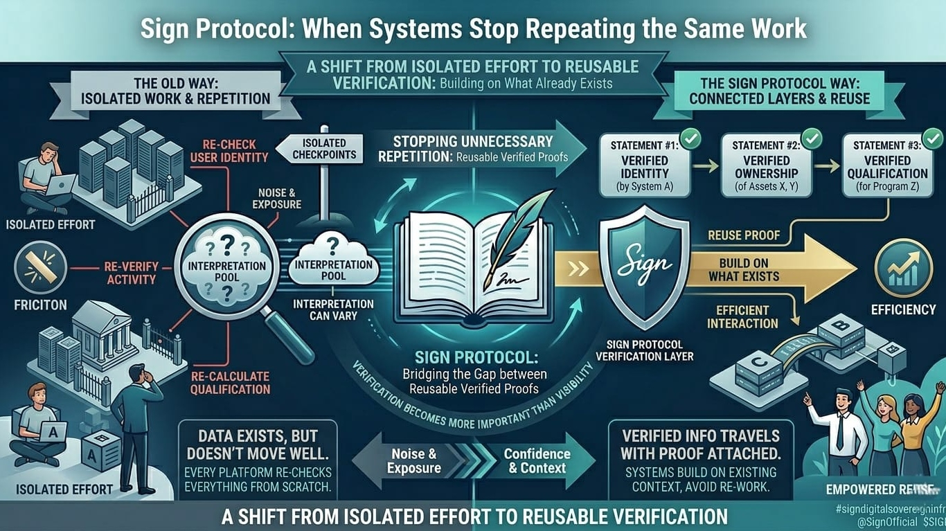 At a broader level, this feels like a shift from isolated effort to reusable verification. Instead of doing the same work again and again, systems can start building on what already exists.#signdigitalsovereigninfra @SignOfficial $SIGN
