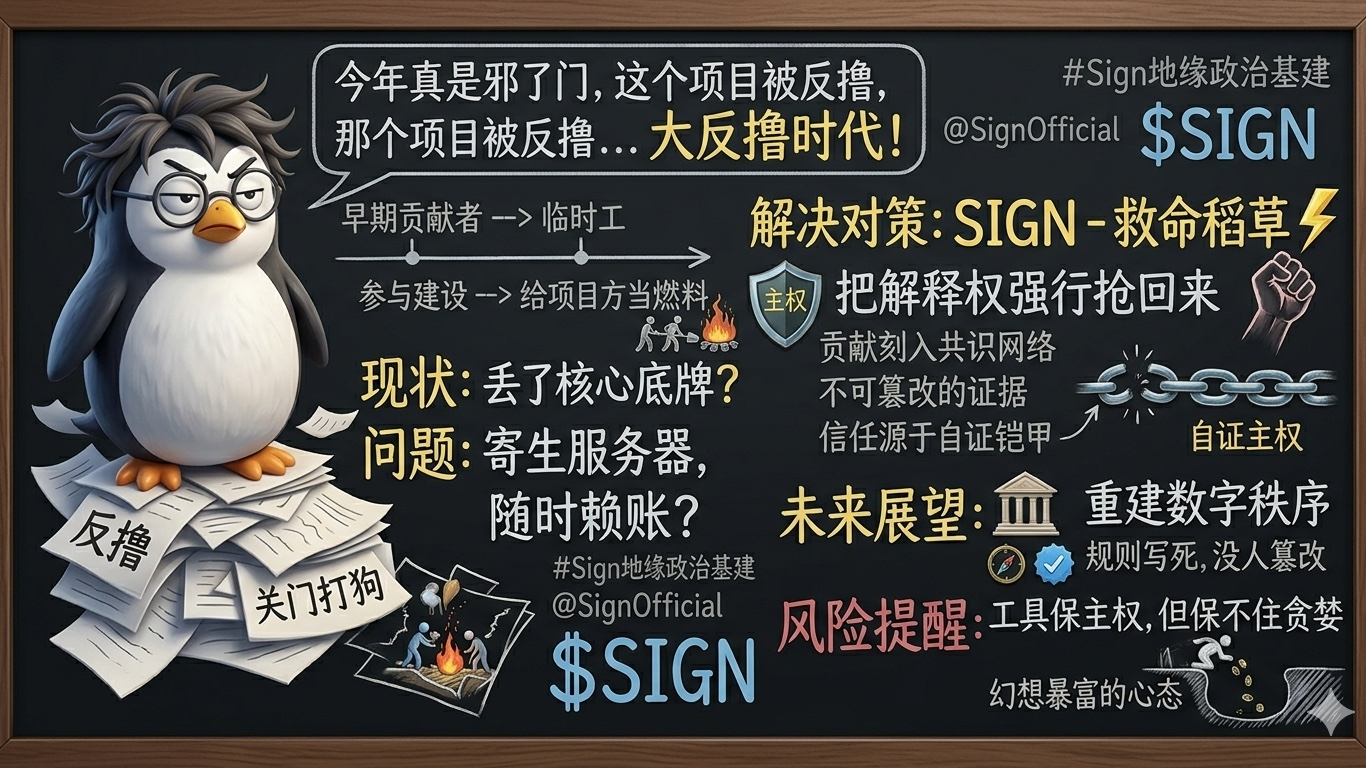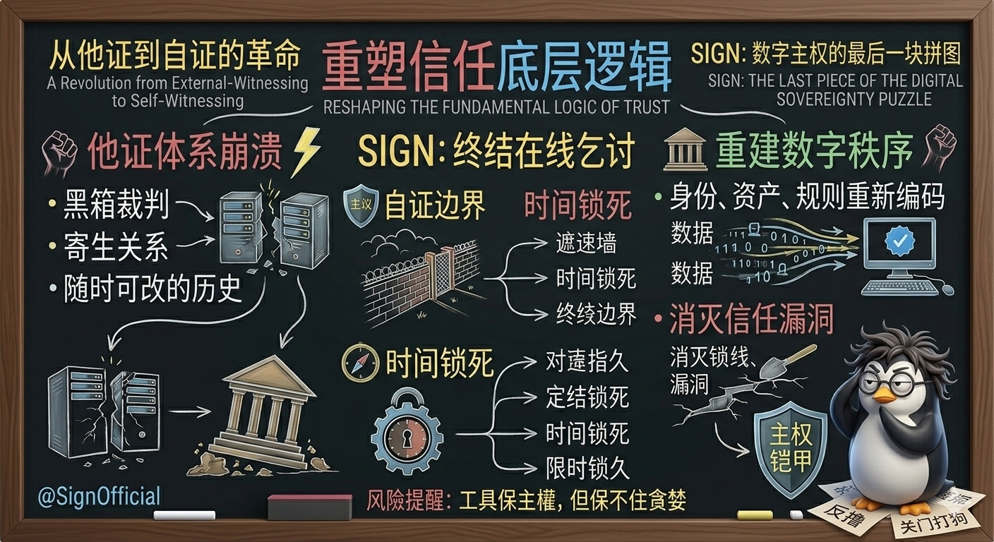Agora, o maior problema é que nossos registros de participação, nosso nível de contribuição e até mesmo nossa identidade digital estão todos parassitando nos servidores de outras pessoas. Assim que a outra parte quiser se esquivar, todo o seu esforço pode ser instantaneamente zerado. Esse sistema de prova de terceiros é basicamente um contrato de venda digital moderno. Essa é a razão pela qual o pequeno pinguim sempre procura explicar o Sign, ele é o último recurso para nós, que fomos exasperados por isso. Diante desse risco de perder tudo a qualquer momento, o pequeno pinguim acredita que a única estratégia é recuperar a autoridade de explicação à força. O que o Sign faz é particularmente brutal, ele não discute sentimentos com você, ele simplesmente grava cada uma de suas contribuições, cada uma de suas ações em uma rede de consenso irreversível. Se você usar sua lógica, então você não é mais um mendigo implorando para que alguém lhe pague. O Sign transforma cada centavo que você investiu em uma prova imutável. Mesmo que a outra parte queira romper o acordo e não reconhecer, mesmo que a plataforma queira operar nas sombras, desde que você tenha em mãos aquele registro de validação que não pode ser negado, você possui soberania no deserto digital. O pequeno pinguim vê isso claramente, é uma lógica de auto-prova. A confiança não é mais um recibo que outros lhe dão, mas sim uma armadura que você mesmo forjou.