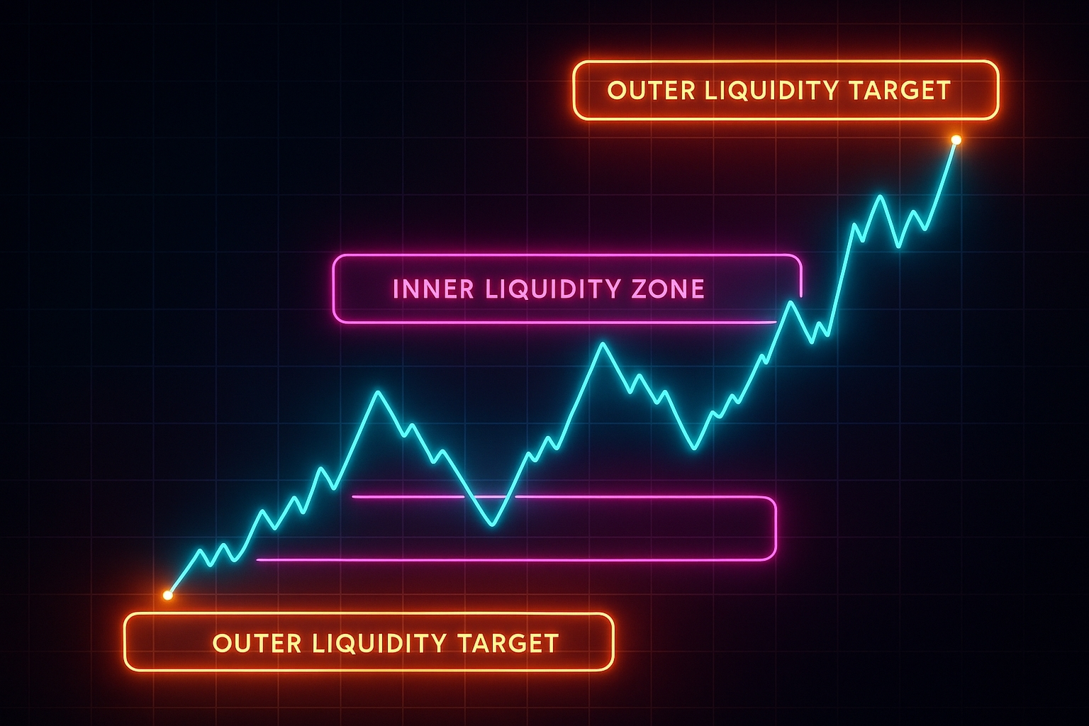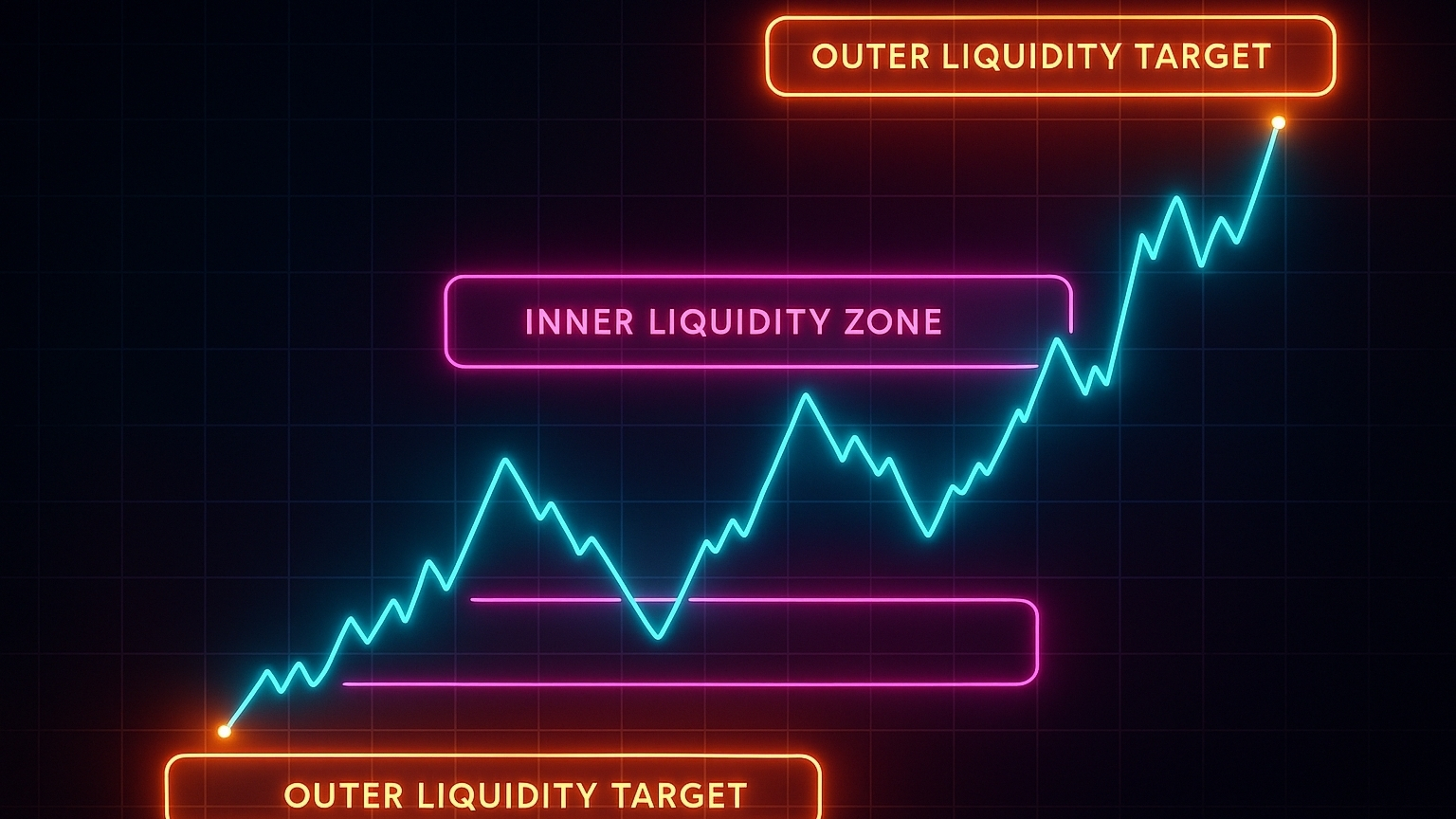 Price often sweeps internal liquidity first to build momentum, then targets external liquidity for expansion. Understanding this sequence prevents premature entries and improves timing.