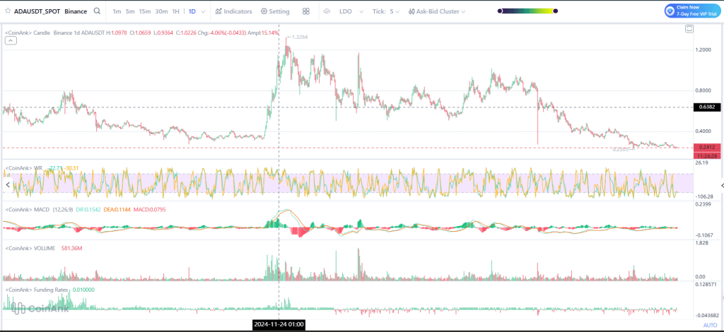 O preço do Cardano, no entanto, não conseguiu manter esses níveis. Desde então, é uma queda gradual para o ativo.