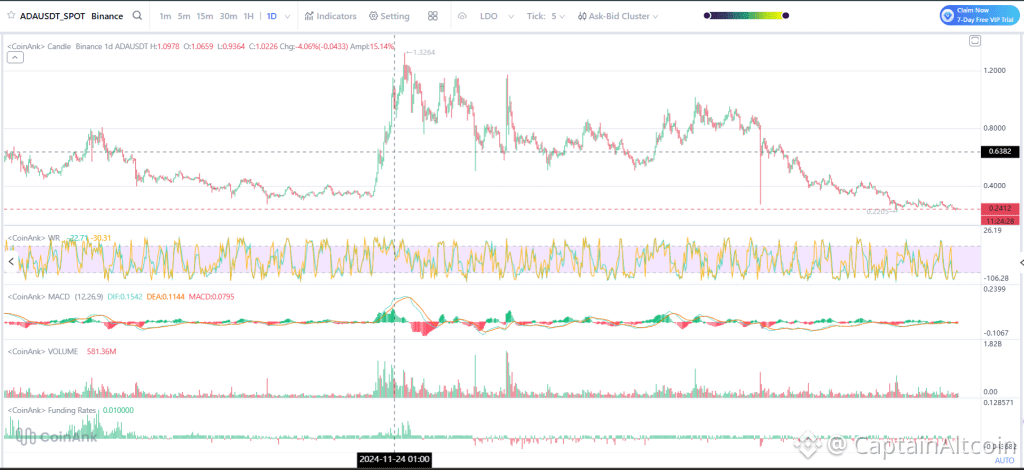 ADA está em torno de $0.2410 agora, e esse nível não é apenas mais um número, é a linha que decide o que acontece a seguir. Se os compradores entrarem e defenderem isso adequadamente, poderíamos ver um impulso que empurra o preço de volta para a zona de $0.30–$0.35.