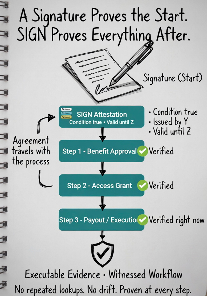 O SIGN não apenas registra acordos. Ele os transforma em evidências executáveis.