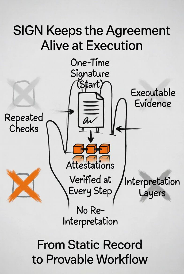 Em vez de armazenar acordos como registros estáticos, o SIGN os codifica como atestações sob um esquema.