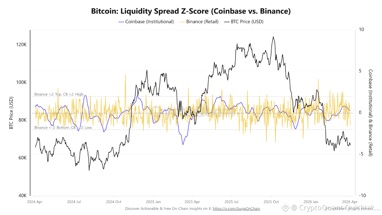 The heart of the order flow is not in the isolated anomaly, but in the DIVERGENCE. The indicator measures the liquidity difference: when Binance goes to extremes (<-2 or >+2), it generates an imbalance. If Retail buys euphorically (>+2) and Coinbase does not follow, a Liquidity Vacuum is created. When the lines open an "alligator mouth", there is distortion, which is always corrected in the direction of the institutional flow.