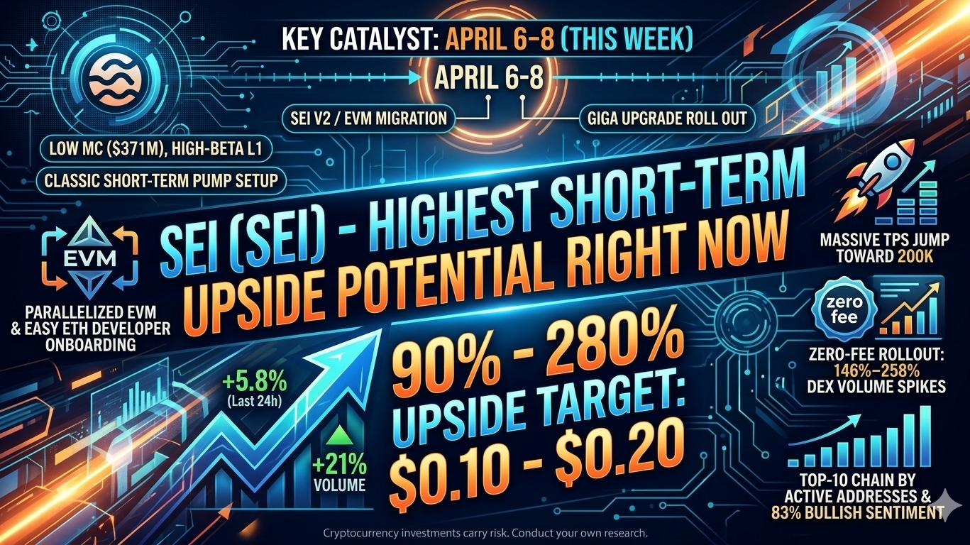 Key catalyst in the exact window: $SEII v2 / EVM migration + Giga upgrade elements roll out April 6–8 (literally this week). This brings parallelized EVM, massive TPS jump toward 200K, and easier Ethereum developer onboarding. Zero-fee rollout already drove 146-258% DEX volume spikes and retail activity.ca5ef05177bf