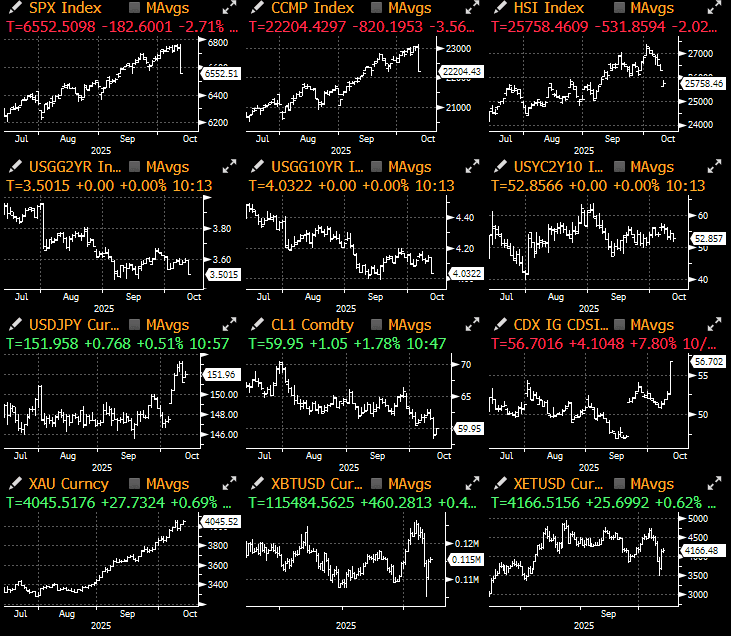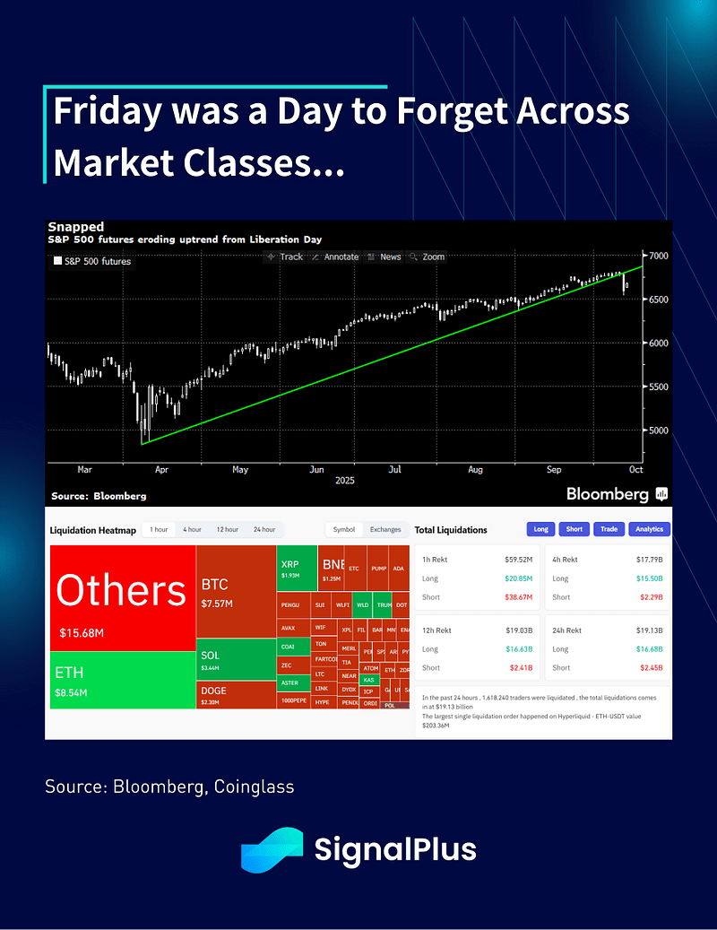 Com o governo dos EUA ainda fechado e os dados econômicos dos EUA em uma fase semi-preta, espera-se que os mercados permaneçam extremamente voláteis esta semana, com visões sujeitas a mudanças a qualquer momento. Com fundos sistemáticos e de momentum ainda altamente investidos, ficaríamos de olho em qualquer aumento sustentado nos IVs para impulsionar fluxos de desrisco daquela comunidade. Claro, quaisquer tweets ou anúncios súbitos de qualquer uma das administrações poderiam mudar a situação 180 a qualquer momento, então provavelmente é melhor manter o risco o mais leve possível nos próximos dias.