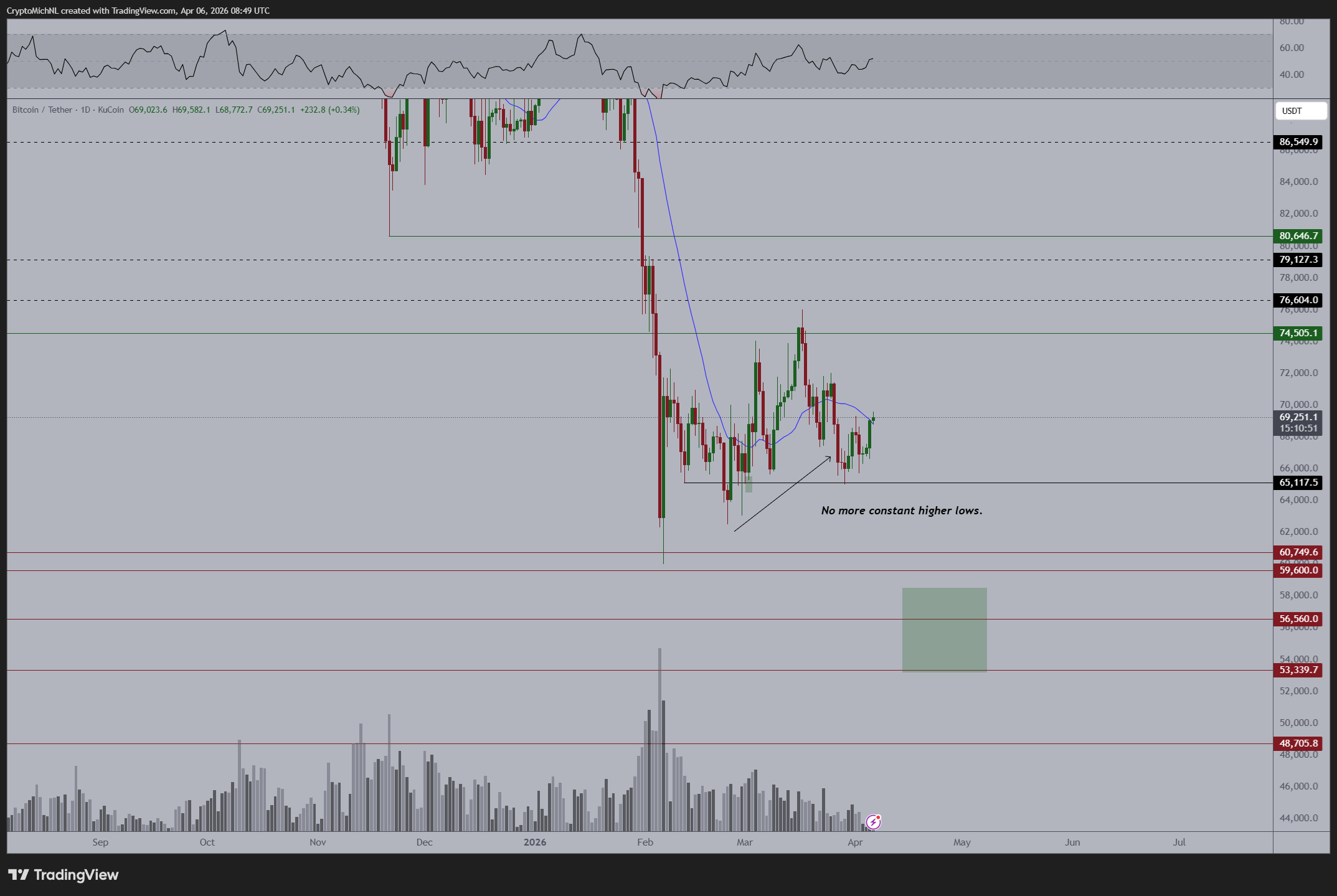 Gráfico de um dia BTC/USDT. Fonte: Michaël Van de Poppe