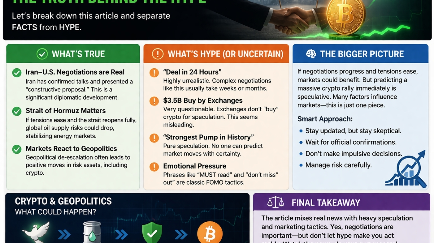 In summary, the article mixes some real-world events with heavy speculation and emotional language. It may highlight a potentially positive development (negotiations), but it overstates the impact, exaggerates timelines, and tries to drive hype around crypto gains.