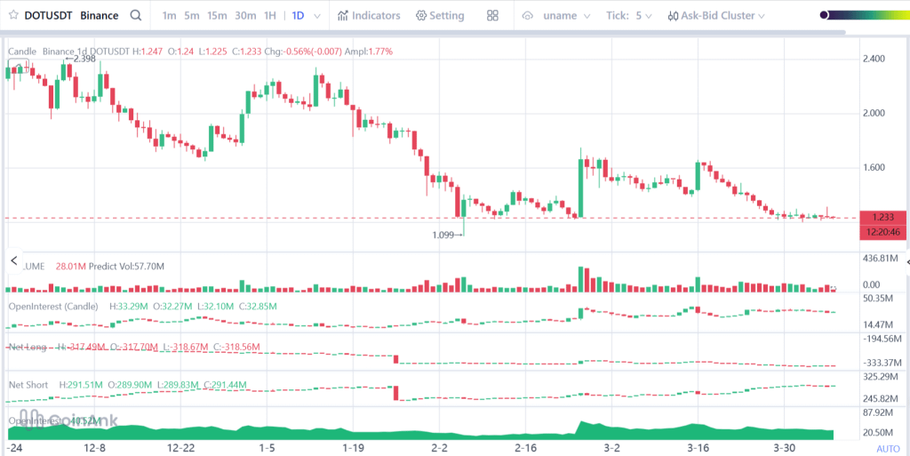 Gráfico de Preço DOT / Fonte: CoinAnk Dados de Longo e Curto Líquido Revelam Tendência de Posicionamento Baixista