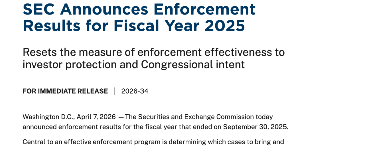 Sob a liderança do atual presidente Paul Atkins, a SEC ajustou sua estratégia de fiscalização, mudando o foco do número de casos para o combate à fraude e à manipulação de mercado, que têm um impacto mais significativo sobre os investidores. Os dados indicam que as ações de fiscalização contra empresas públicas, incluindo aquelas no setor de criptomoedas, diminuíram cerca de 30% no ano fiscal de 2025 em comparação ao ano anterior.