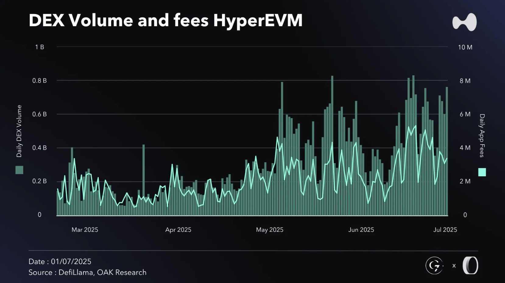 Comparar os três principais protocolos revela uma hierarquia clara na geração de receita do Q1 2026. Os $192 milhões da Hyperliquid foram os mais altos por uma ampla margem, seguidos pela Pumpfun com $120 milhões (cerca de 62% do total da Hyperliquid) e pela Titan Builder com $62 milhões (aproximadamente 32% do número da Hyperliquid). Esses dados mostram que a Hyperliquid capturou quase 60% mais receita do que a Pumpfun e mais de três vezes quanto a Titan Builder. Os números ilustram como locais de execução focados, como a Hyperliquid, dominaram a captura de valor no trimestre, enquanto plataformas de lançamento e ferramentas de construção ficaram atrás.