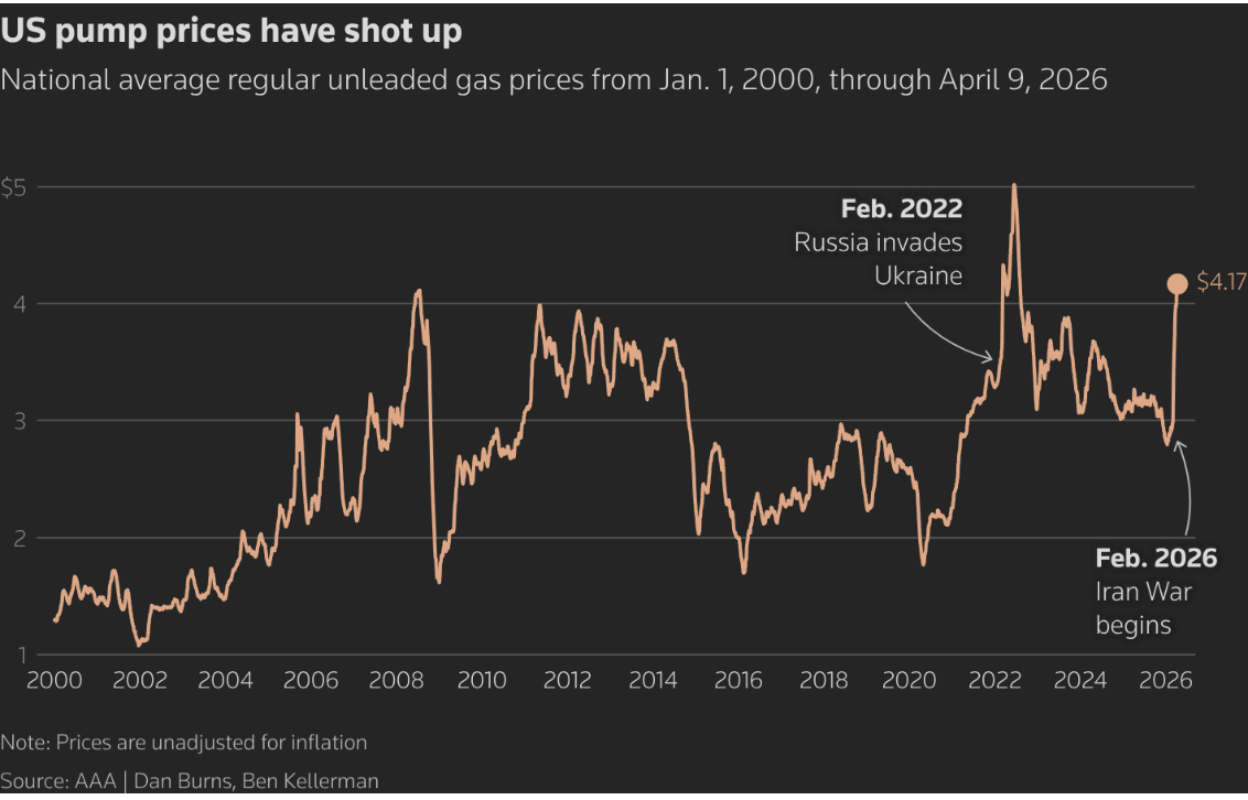A inflação nos EUA subiu acentuadamente em março, com o CPI aumentando 0,9% mês a mês, marcando o maior ganho desde 2022. O aumento foi impulsionado em grande parte pelos preços da gasolina em meio a tensões geopolíticas. Em uma base anual, a inflação atingiu 3,3%, sinalizando uma pressão ascendente renovada. No entanto, a inflação subjacente permaneceu relativamente contida, indicando que o aumento é principalmente impulsionado por energia.