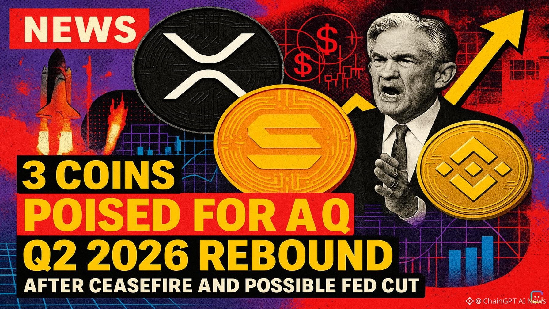 Cryptocurrency markets have been under pressure for several months, driven by a broad downtrend that began in October 2025 and intensified with renewed selling in February 2026. Geopolitical risk—most notably the US-Iran conflict—pushed investors toward the exits, triggering meaningful capital outflows. With a ceasefire now in place and market sentiment slowly stabilizing, traders and investors are watching for assets that could outperform in Q2 2026. Here are three coins to keep an eye on. XRP XRP was one of 2025’s breakout performers, but it has slipped from the highs over the past few months. After peaking at $3.65 in July 2025, XRP’s price trended down, yet the token benefited from a wave of product launches late in 2025—most notably several spot ETF listings tied to crypto exposure. If the Federal Reserve follows through on market expectations and cuts rates after its May meeting, risk appetite could rise and ETF inflows may accelerate. That combination—improving macro conditions and renewed capital entering ETFs—could help XRP recover lost ground in Q2. Solana (SOL) Solana has built a reputation for resilience and strong performance across multiple cycles. Between 2022 and 2025, SOL climbed from roughly $9 to an intracycle peak near $293, demonstrating the network’s ability to attract activity and capital. Like other major tokens, Solana benefited from the late-2025 ETF launches, which may continue to funnel new liquidity into the space. With geopolitical tensions easing and macro policy becoming potentially more accommodative, SOL is one of the altcoins many traders expect to rebound if risk-on flows return. Binance Coin (BNB) BNB enjoyed a powerful 2025 run, breaking the $1,000 barrier for the first time and reaching an all-time high of $1,369.99 in October. The token has since given up more than half of that value, leaving room for a possible recovery if market conditions improve. BNB’s large user base, exchange-driven utility and historical performance make it a popular pick for investors looking for a rebound candidate in Q2 2026—particularly if ETF-driven inflows and renewed risk appetite lift the broader market. Takeaway Markets remain sensitive to macro and geopolitical news, but the ceasefire and a potential Fed rate cut after May could be catalysts for renewed inflows. XRP, Solana and BNB each have distinct narratives—ETF exposure, network adoption and exchange utility—that could position them to outperform if liquidity returns in Q2 2026. As always, investors should weigh volatility and risk management before increasing exposure. Read more AI-generated news on: undefined/news