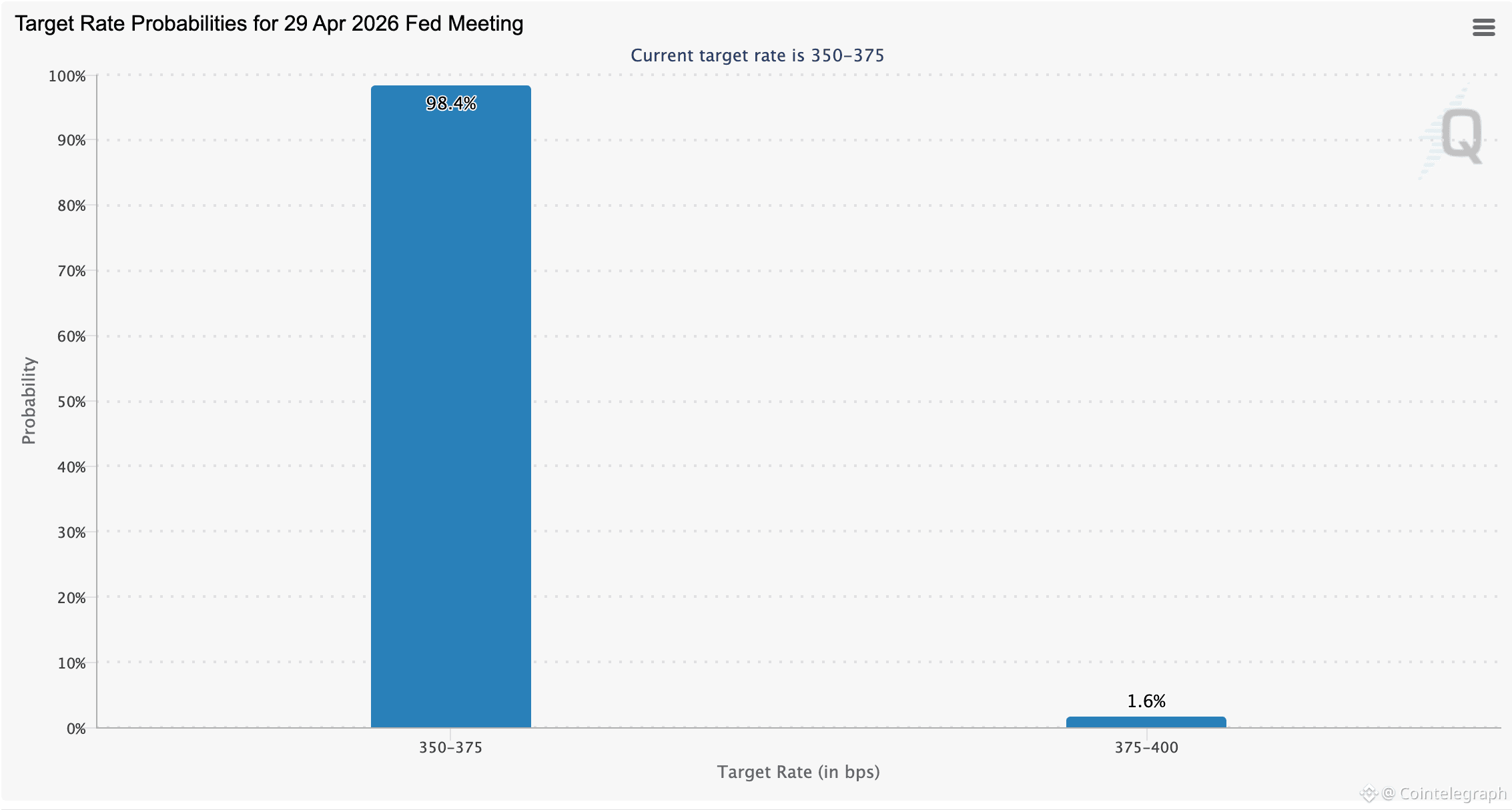 As chances de que o FOMC mantenha as taxas inalteradas são de 98,4%. As chances de corte nas taxas aumentam apenas incrementalmente ao longo do ano.
