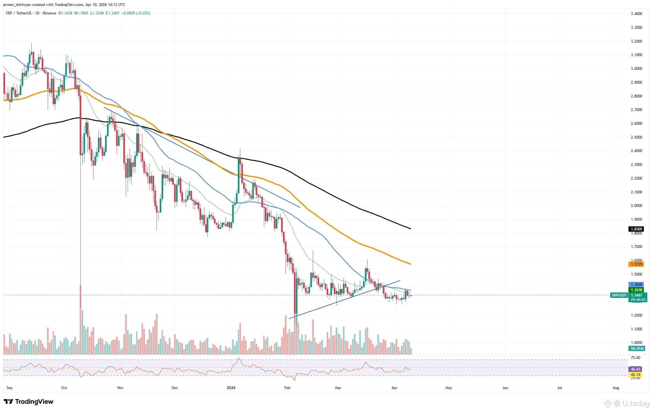 From a technical standpoint, XRP is still experiencing a wider decline. The asset is trading below important resistance zones, and moving averages are still stacked negatively. Short-term price compression, however, has resulted in a tightening structure with higher lows, which is a typical prebreakout formation. The structure itself does not indicate whether the move will resolve up or down, so direction is the problem.
