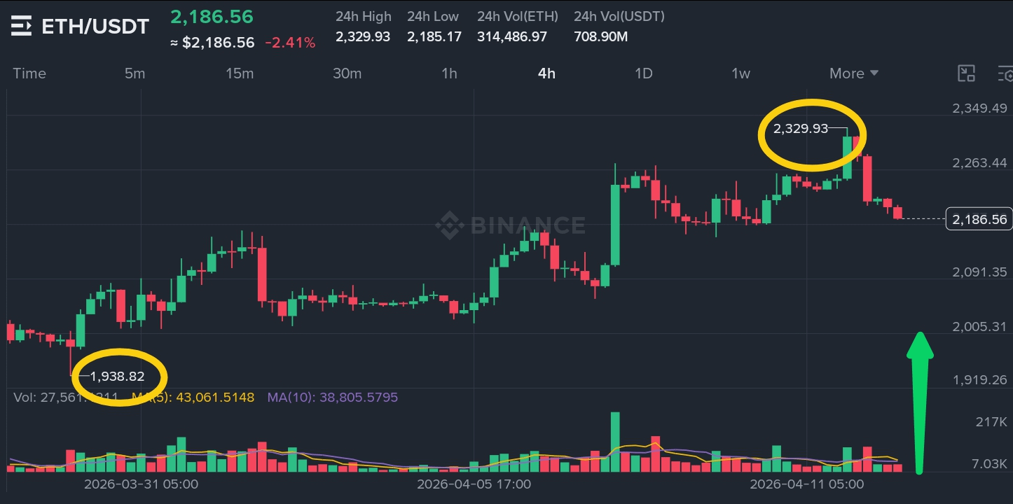 Ethereum rejeitou a $2.330 e retrocedeu para $2.186, agora consolidando logo acima do suporte chave. O gráfico de 4H mostra uma rejeição limpa a $2.330—os vendedores defenderam esse nível agressivamente. O suporte está em $2.185 e $2.090. A resistência está em $2.263 e $2.330. O volume foi de $708M, saudável para o ativo. O RSI está em 48, território neutro.