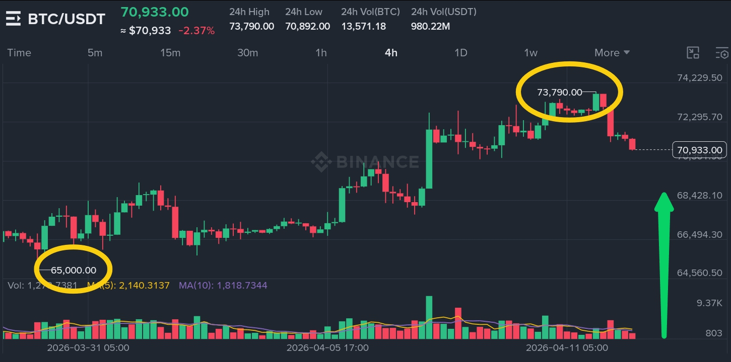 Se $70.500 falhar, espere um reteste de $68.500 e então $66.000. O colapso do cessar-fogo adiciona risco de queda real. Um fechamento abaixo de $68.500 provavelmente acionaria o “dump final” que alguns analistas estão alertando.
