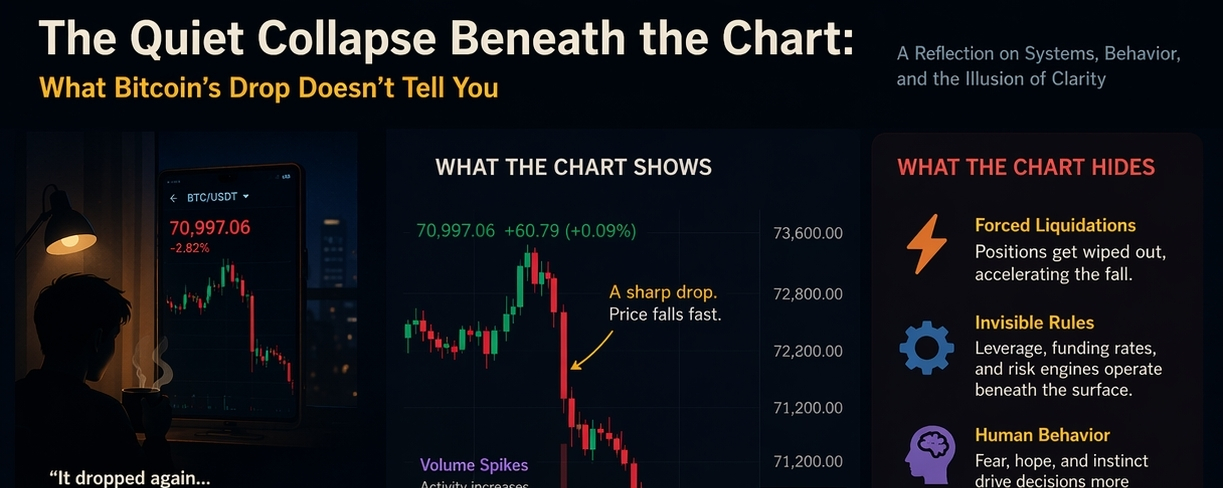 Não a queda em si, ou a recuperação que pode seguir, mas a realização silenciosa de que o que estamos assistindo não é apenas um mercado se movendo—é um sistema revelando como se comporta quando crença, alavancagem e incerteza se encontram no mesmo ponto… no Bitcoin.