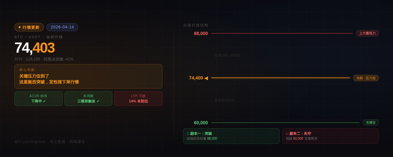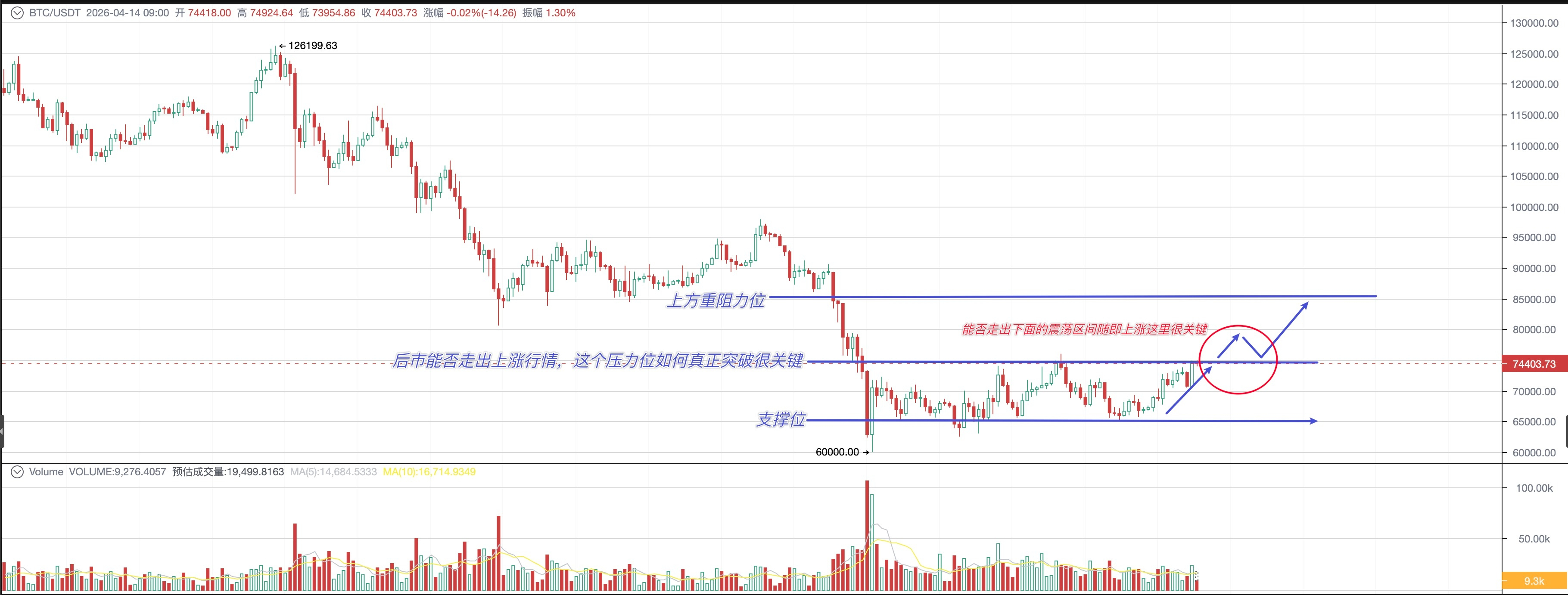 74,000 这个位置,是需要接下来重点盯的地方。