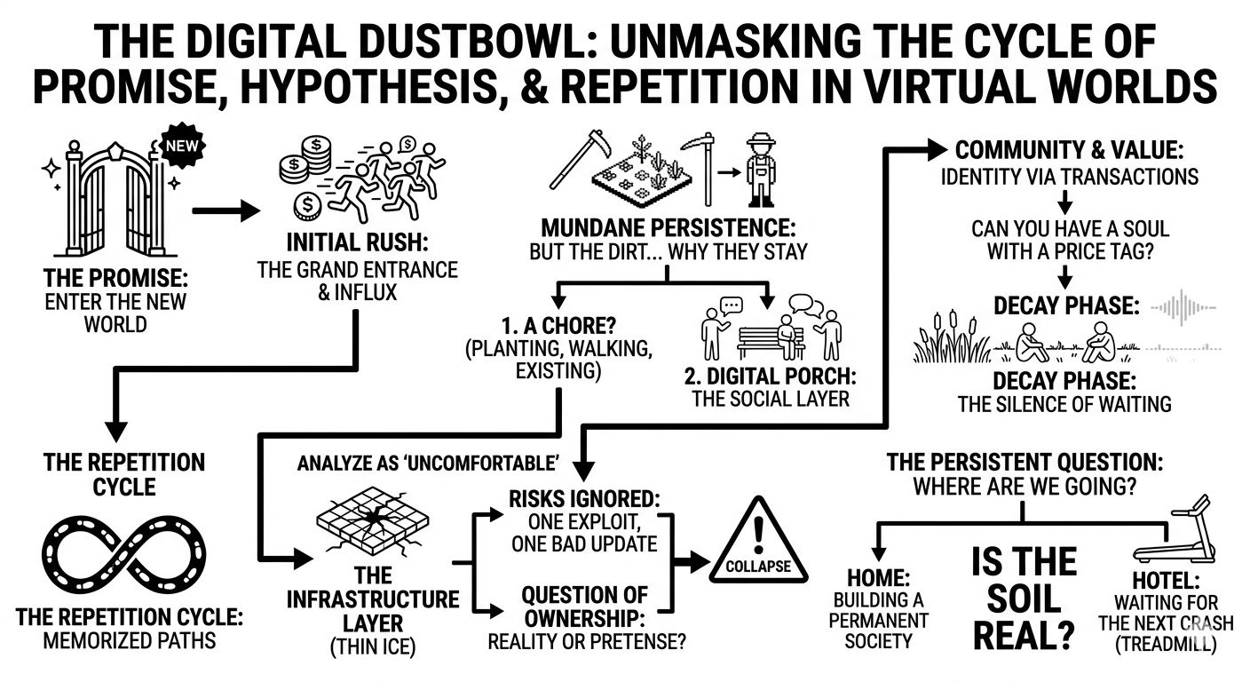 It’s all so fragile. You look at the open world, the exploration, the creation, and you realiz that every "social" interaction is still mediated by a ledger. Every gift, every shared space is just a data point. We’re trying to grow a forest on a marble floor.