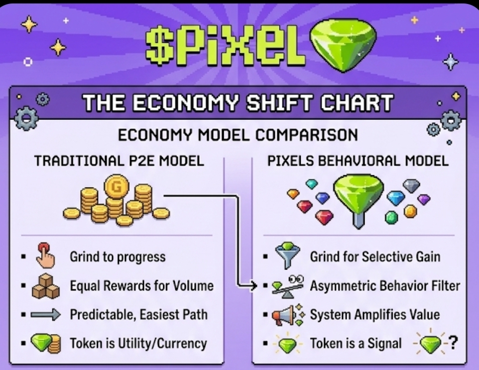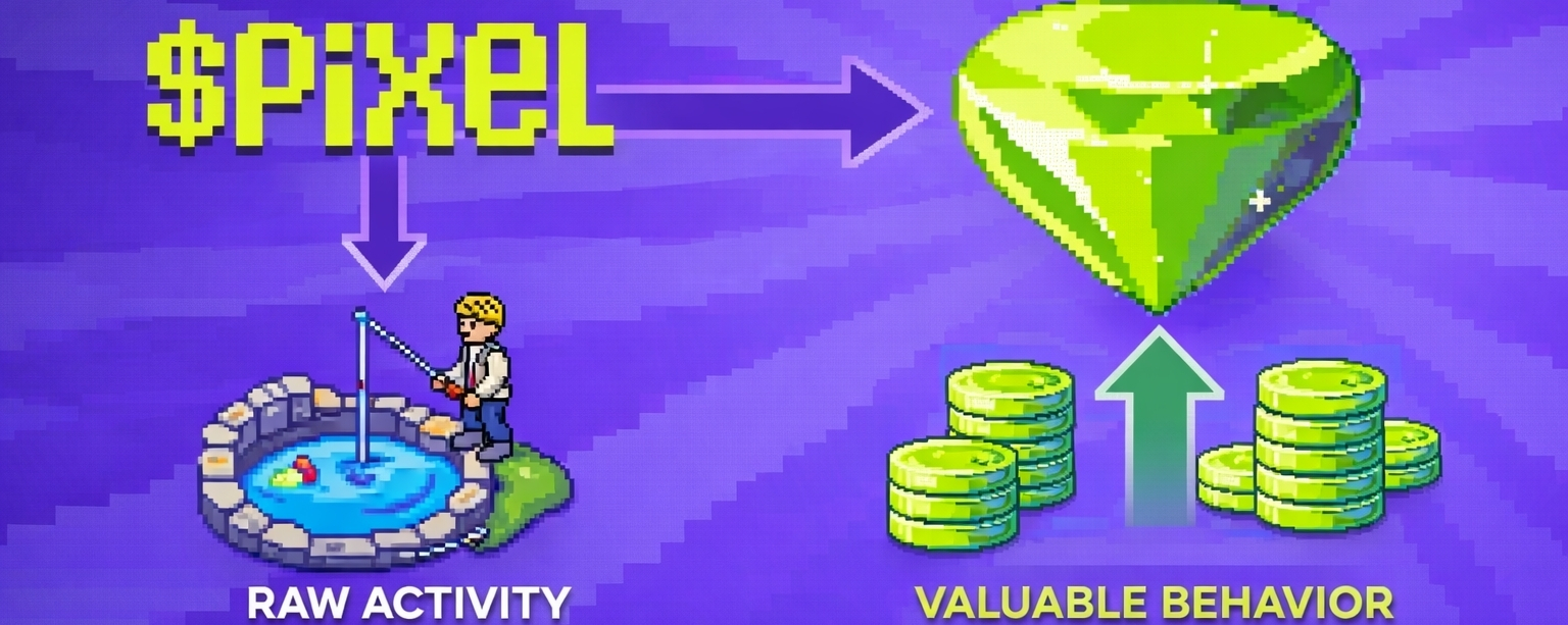 Tenho tentado pensar em uma maneira clara de descrever isso, mas não há uma. Está em algum lugar entre design de incentivo e filtragem de comportamento. $PIXEL está bem no meio disso, mas não da maneira óbvia. Não é apenas a coisa que você gasta ou ganha. Parece mais como a camada que decide quais padrões são reforçados.