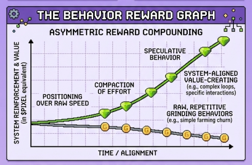 $Pixel não está apenas em cima do gameplay anymore. Está moldando quais versões do gameplay conseguem escalar. Alguns loops se expandem. Outros se achatam. Com o tempo, essa diferença se acumula em algo que parece menos como uma economia de jogo simples e mais como um sistema de seleção.
