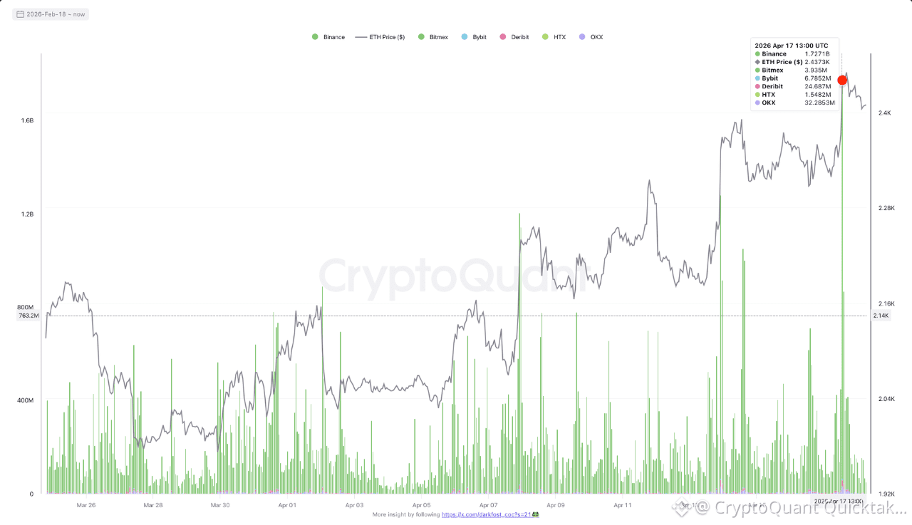Binance alone recorded more than $1.72B in Ethereum derivatives buy volume within a single hour, making the figure particularly notable.