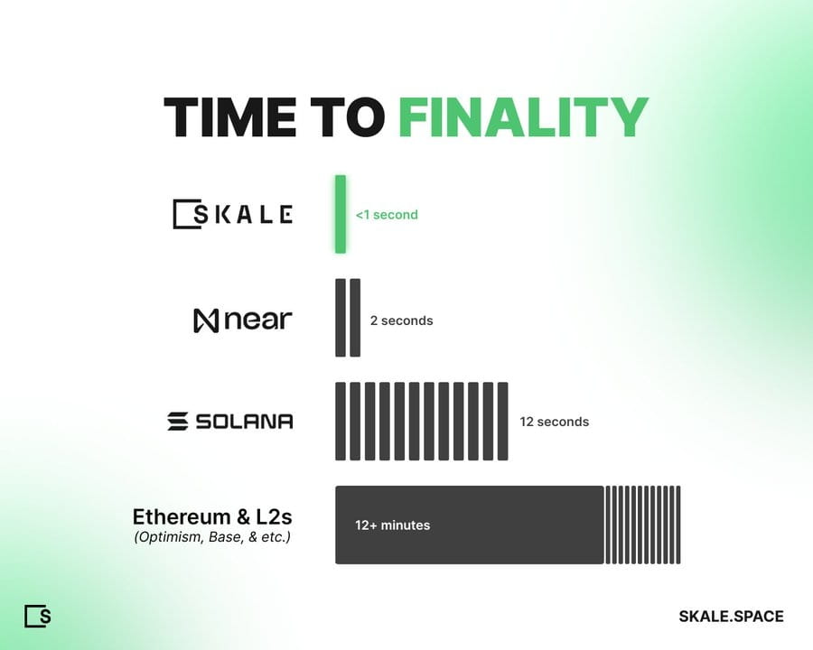 Finalidade rápida - A SKALE confirma transações em menos de 1 segundo, então pagamentos e acessos acontecem quase instantaneamente.