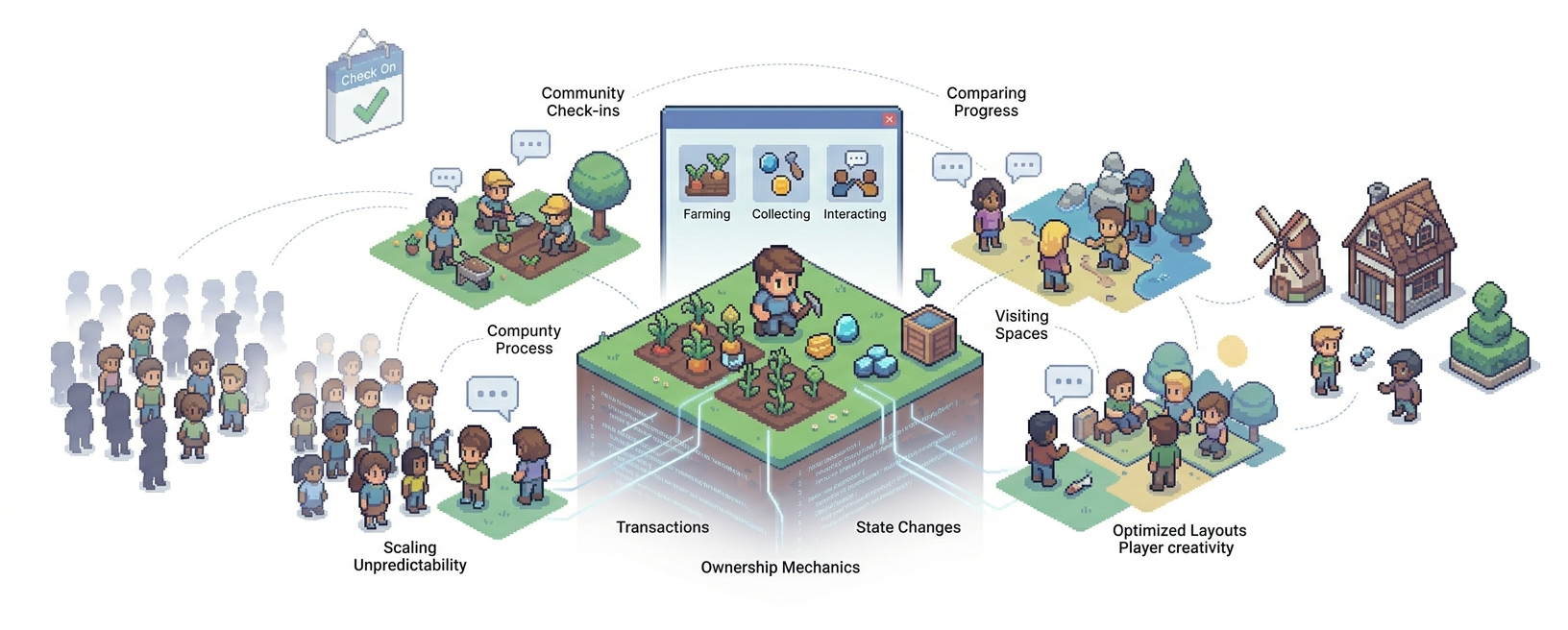 The social layer sits quietly behind all of this. Visiting other players’ spaces, observing their progress, interacting indirectly. It doesn’t feel forced, but it influences how I interpret my own position inside the system. I start to measure progress not just against mechanics, but against visible patterns of activity around me. That kind of comparison isn’t explicitly designed, yet it emerges naturally.