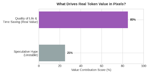 Mas no Pixels, o sistema recompensa menos ou mais por si mesmo. Se você realmente está agregando valor à rede, então você recebe tokens reais. E quando um jogador precisa economizar tempo ou obter algo premium, ele gasta o token pixel de volta no sistema, fazendo com que esse token queime para sempre. Essa é uma parte única $PIXEL .