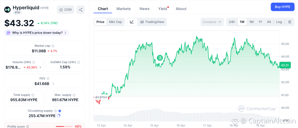 Hyperliquid (HYPE) Price at $43.32 as Deflationary Model Shrinks Supply Daily