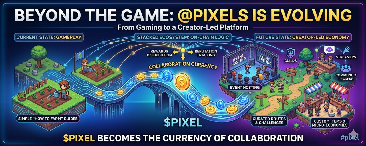 The Stacked ecosystem gives @Pixels a path to make that creator layer programmable and transparent. On‑chain logic can track contributions, distribute rewards, and preserve reputation. It allows long‑term value to flow back to the people building culture around the game, not just the core dev team.