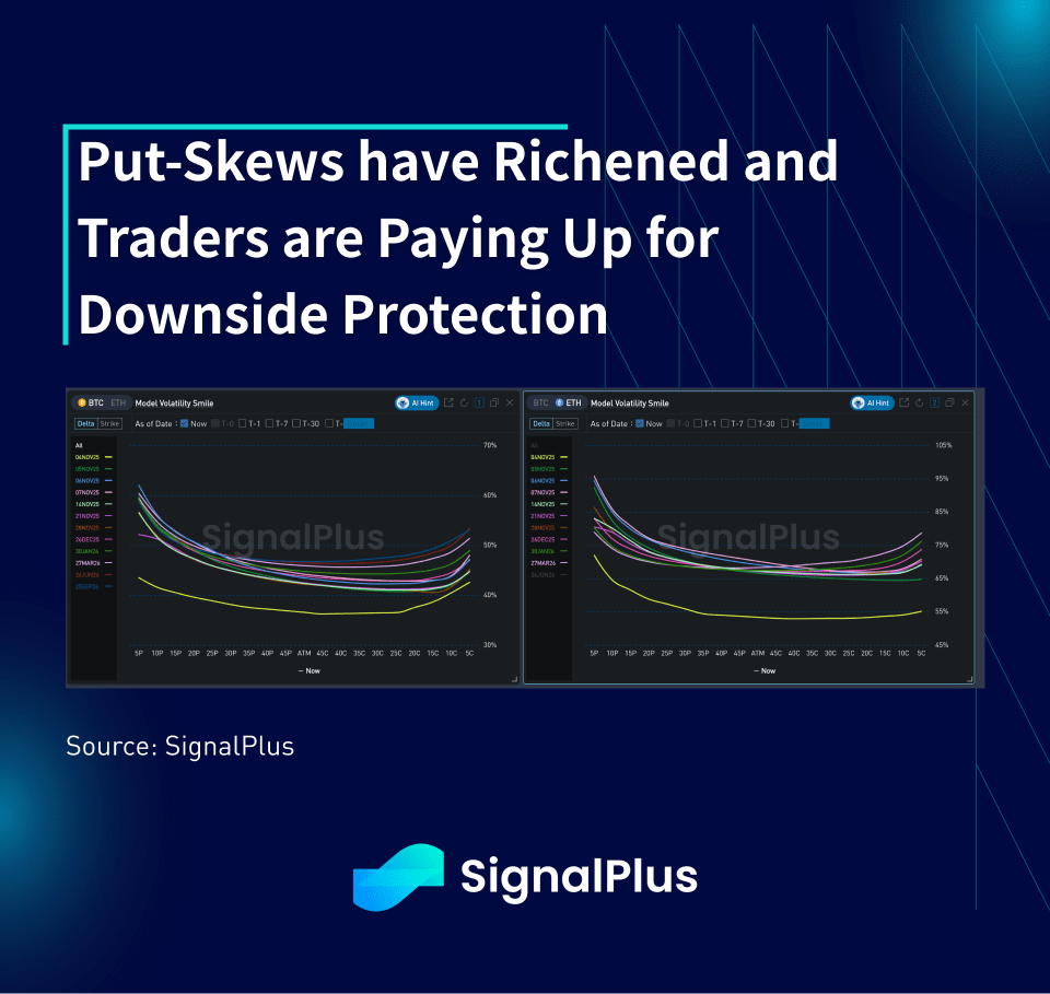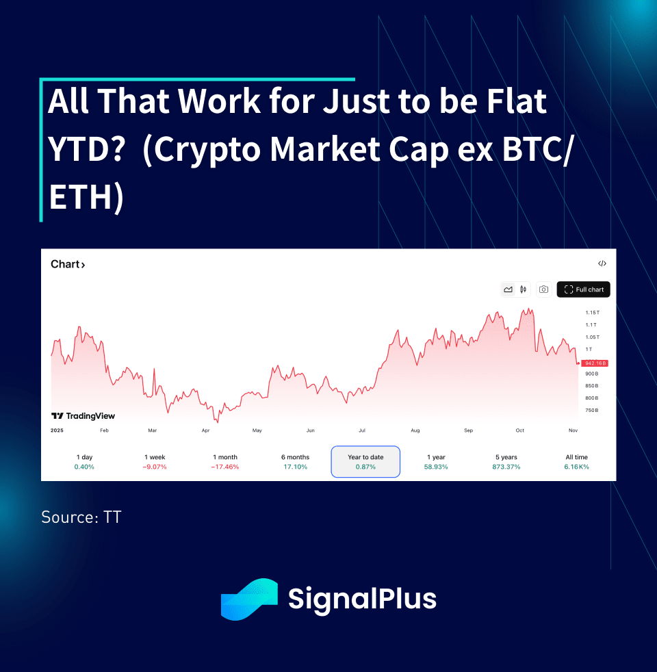 Os puts-skews se re-enriqueceram em BTC & ETH enquanto os traders se preparam para mais uma perna para baixo no curto prazo. Compartilhamos a mesma cautela e não ficaríamos surpresos em ver BTC testar $100k para baixo novamente (muitos tokens já negociaram abaixo de suas mínimas de 10 de outubro), talvez impulsionados por alguma fraqueza nas ações dos EUA ou riscos negativos nas manchetes.