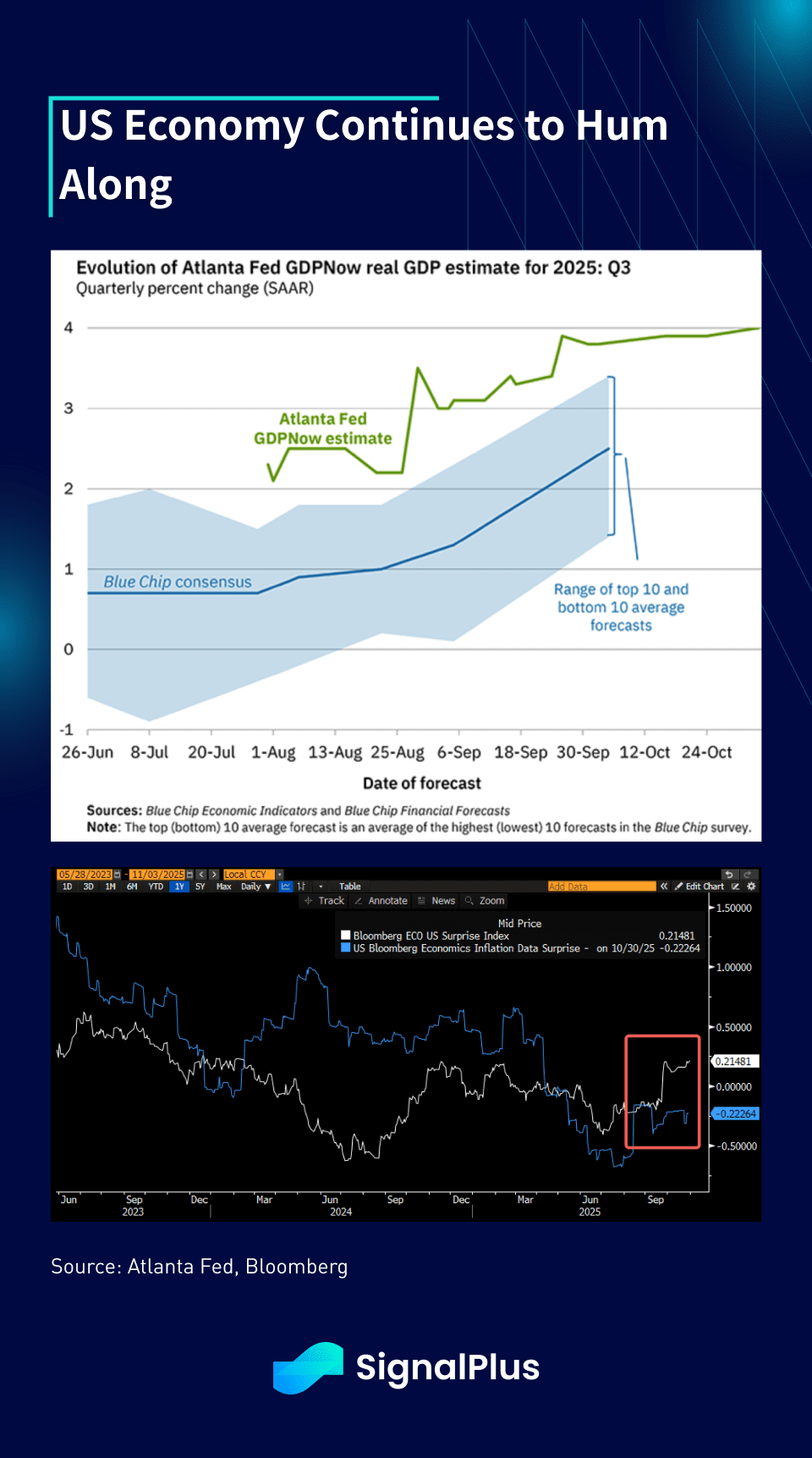 Enquanto isso, a economia continua a funcionar com o FedGDP de Atlanta sugerindo um crescimento de 4% no terceiro trimestre, bem acima de qualquer estimativa de Wall Street, e consistente com o recente aumento no momentum dos dados. O Fed realmente precisa cortar contra esse cenário de crescimento?