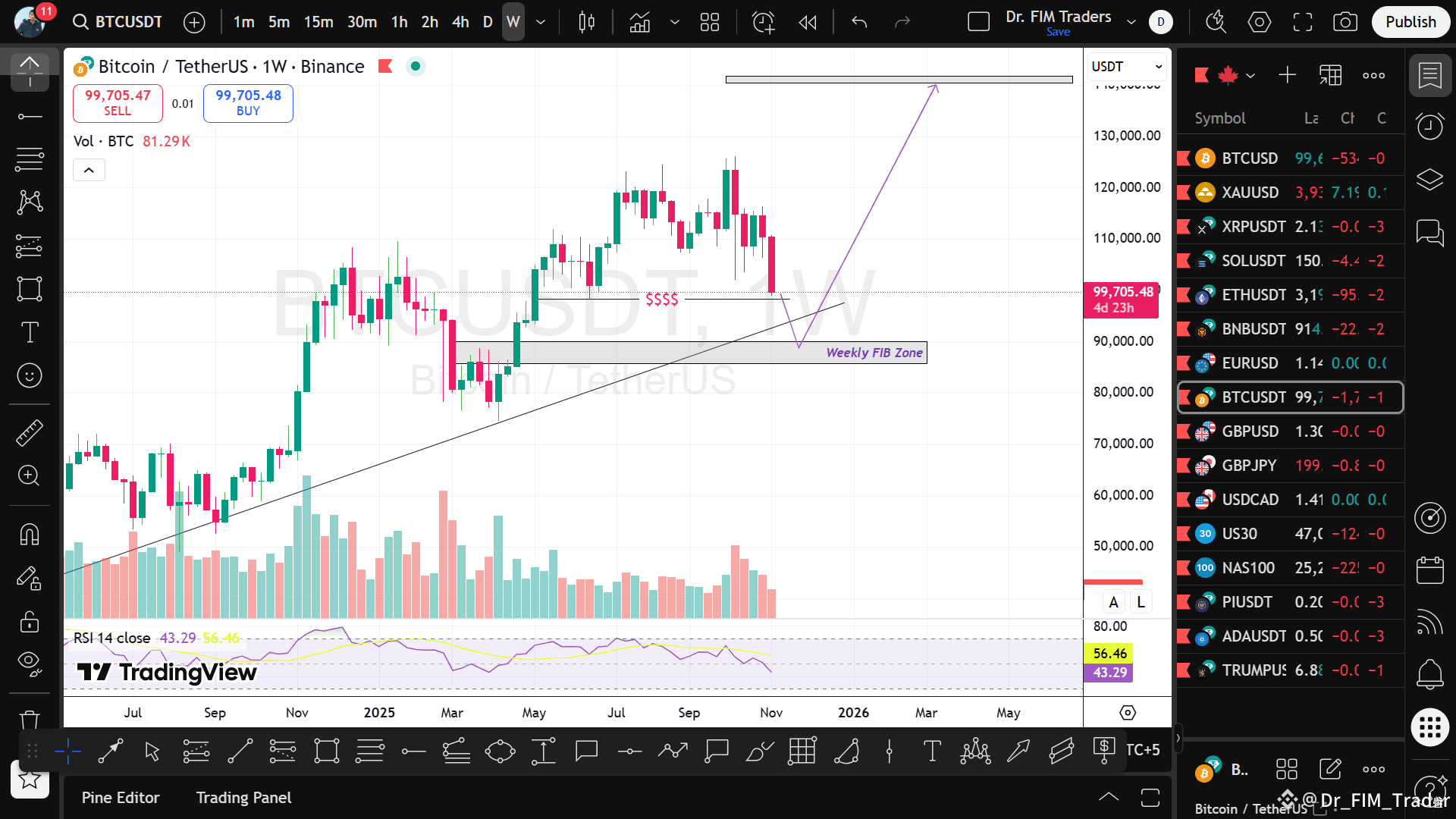 $BTC Oi, pessoal. Estou aqui para compartilhar o próximo movimento detalhado do bitcoin com base na minha análise técnica. Vamos mergulhar na análise semanal, o #bitcoin tocará o $USDT 90k e isso se baseia no gráfico diário. Porque há muita liquidez abaixo do nível de 100k, o mercado levará essa liquidez dos varejistas e cairá até o nível de 90k. Além disso, há um nível fib e o mercado tocará a linha de tendência semanal. A partir daí, subirá até o máximo histórico.