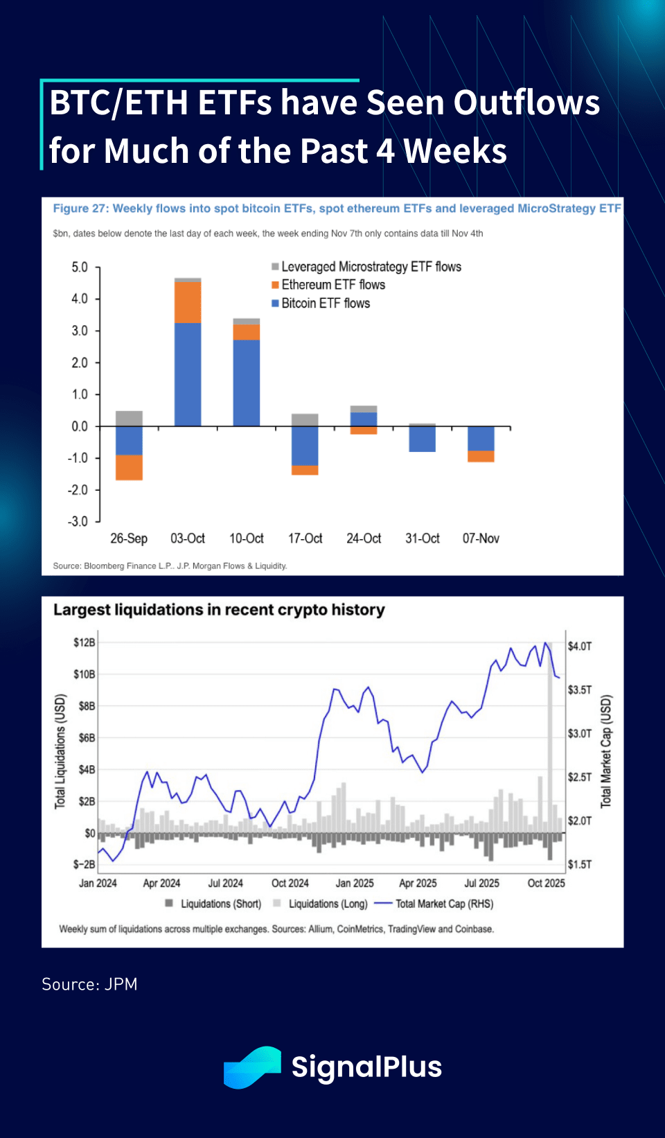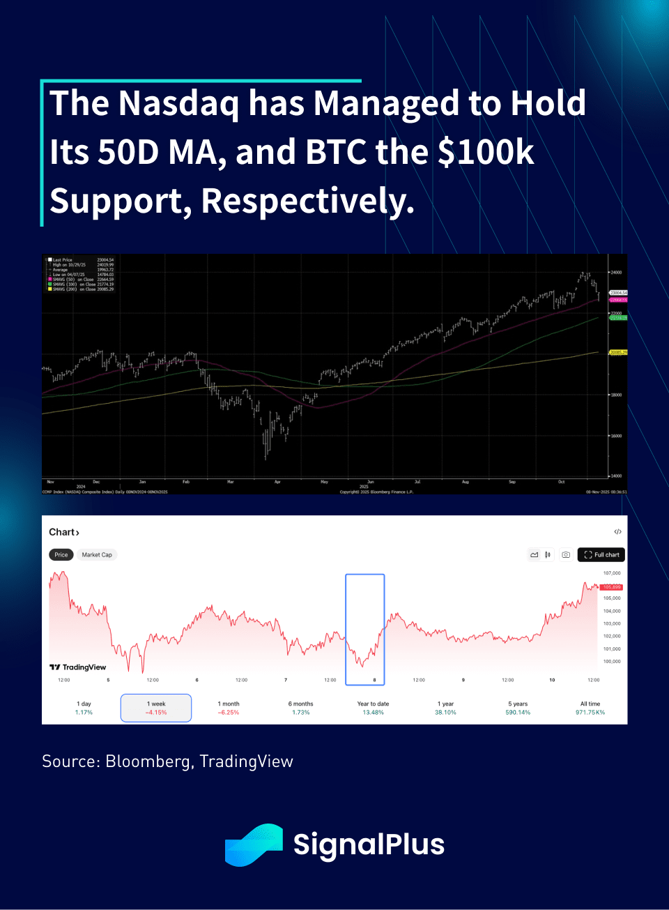 Os ativos macro tiveram uma semana difícil na semana passada, com o Nasdaq sofrendo sua pior perda semanal desde o Dia da Libertação em abril, puxado para baixo por preocupações sobre uma bolha de IA em desinflacão e dados econômicos decepcionantes.