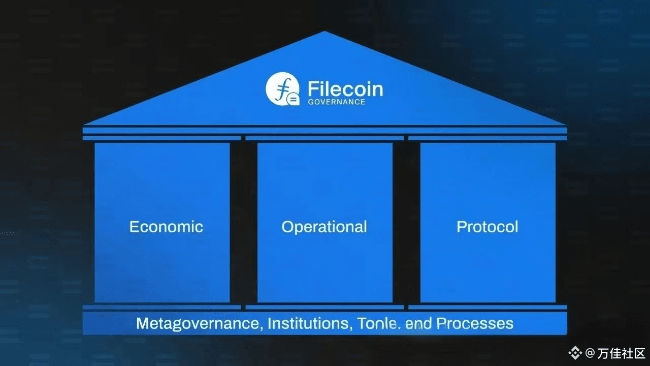Governança Econômica (Economic Governance): focada em fundos, mecanismos de incentivo e sustentabilidade, abrangendo desde a economia de armazenamento e recuperação até o uso do cofre da rede. Isso inclui o apoio à financiamento de produtos públicos (PGF) que são difíceis de integrar completamente em modelos de negócios, como ferramentas e infraestrutura compartilhadas para desenvolvedores.