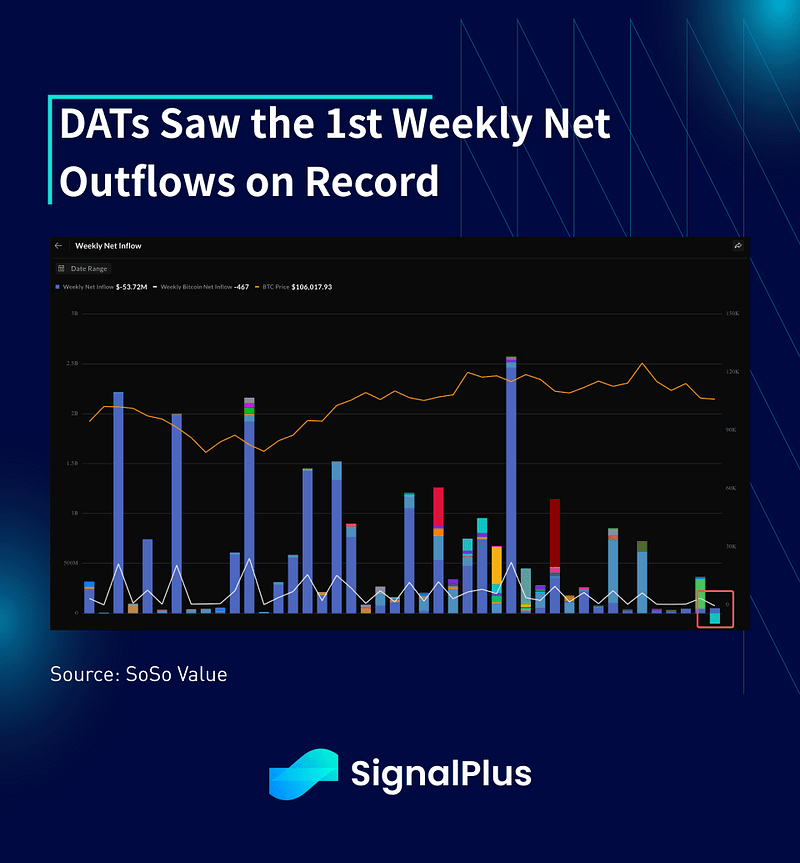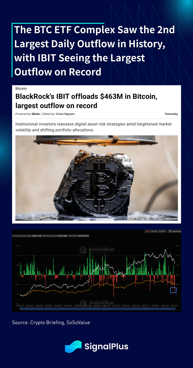 Sem surpresa, vimos uma rápida desleverage e saídas de dinheiro real em todo o complexo cripto. Liquidações significativas de futuros CEX são seguidas por máximas no ano em saídas de ETF e vendas de DAT, com o IBIT da Blackrock vendo um recorde de um dia de -$463M em vendas e DATs também vendo as primeiras saídas semanais desde a sua criação.