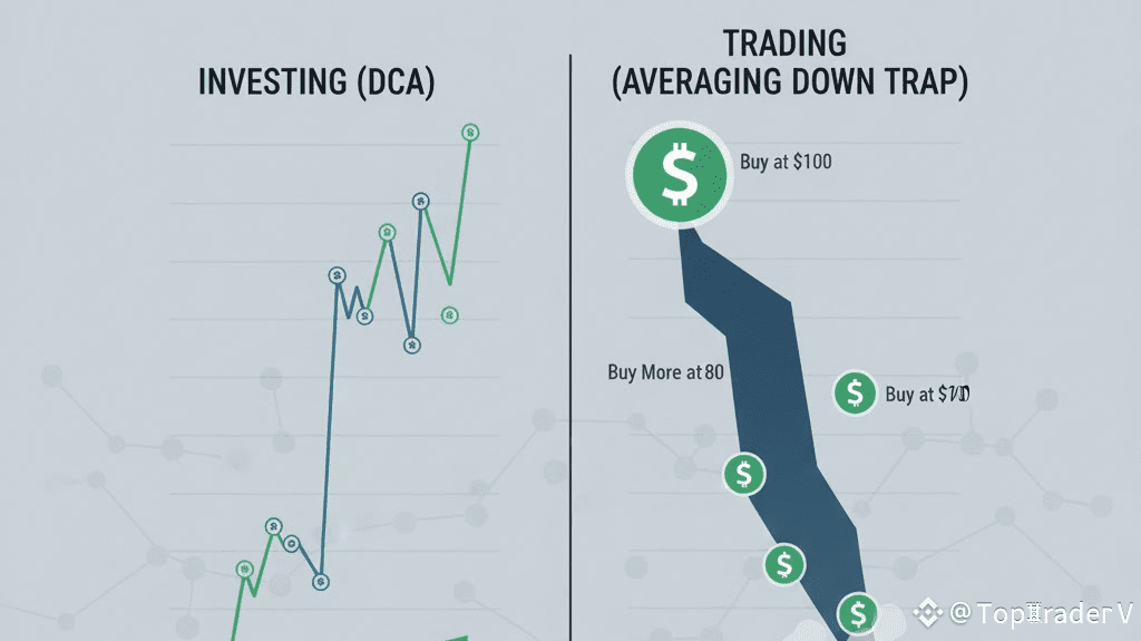 Pare de confundir uma estratégia de investimento de longo prazo que constrói riqueza (DCA) com uma racionalização de negociação de curto prazo que destrói capital (Fazer Média para Baixo).