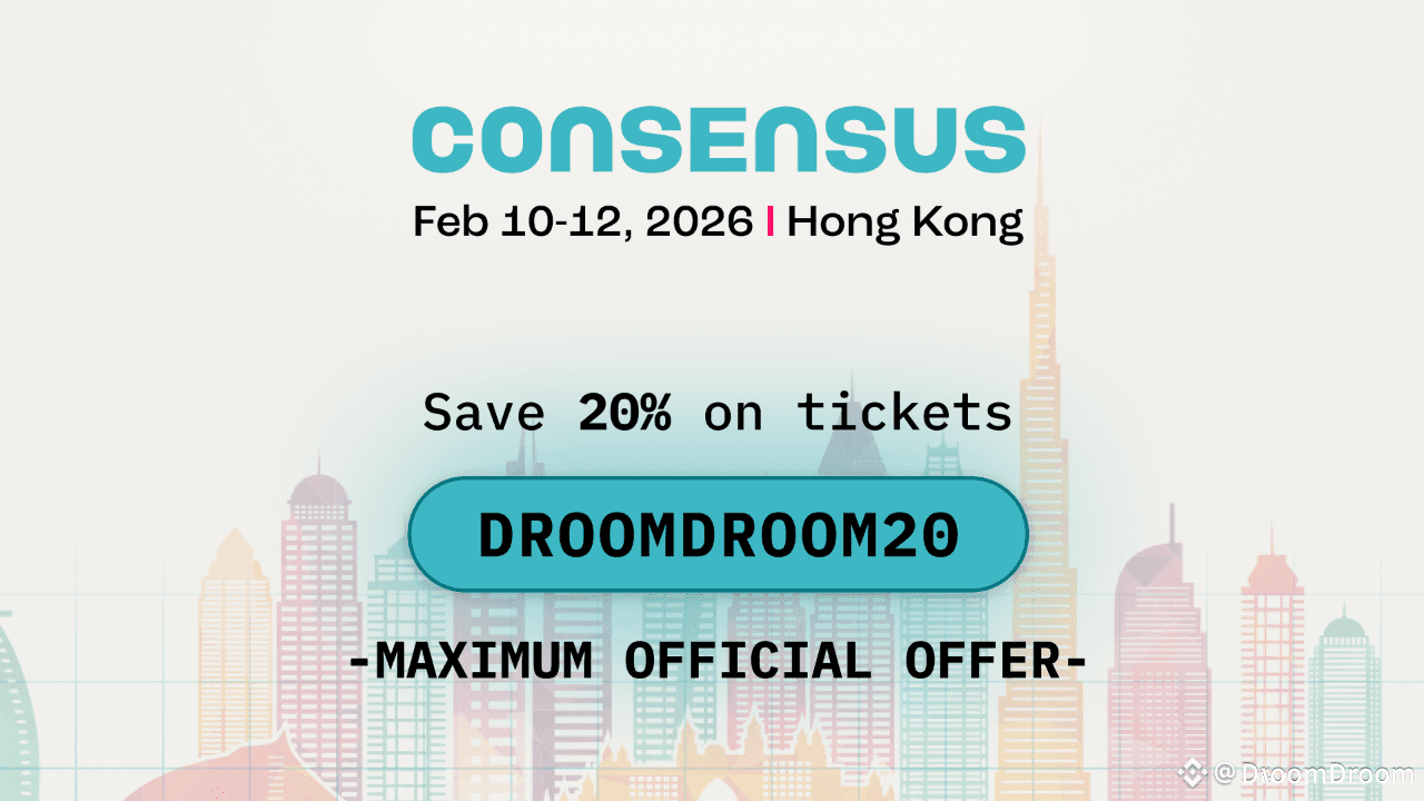 Use o código promocional oficial DROOMDROOM20 para aproveitar 20% de desconto no seu ingresso do Consensus Hong Kong 2026 e junte-se a milhares de líderes moldando o futuro do blockchain na Ásia.