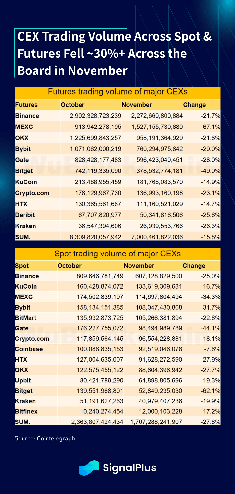 O cripto continuou sua recente sequência de fraqueza à medida que os preços despencaram tanto na sexta-feira quanto na segunda-feira em condições de liquidez extremamente finas. Rumores de um grande formador de mercado vendendo inventário não ajudaram a situação, à medida que as consequências de 10/10 continuam a aparecer. Como a liquidez e os volumes de negociação diminuíram visivelmente nas últimas semanas, particularmente no mercado OTC, BTC/ETH serão cada vez mais utilizados como o proxy de hedge, já que são os únicos tokens principais com qualquer tipo de liquidez em tamanho institucional.